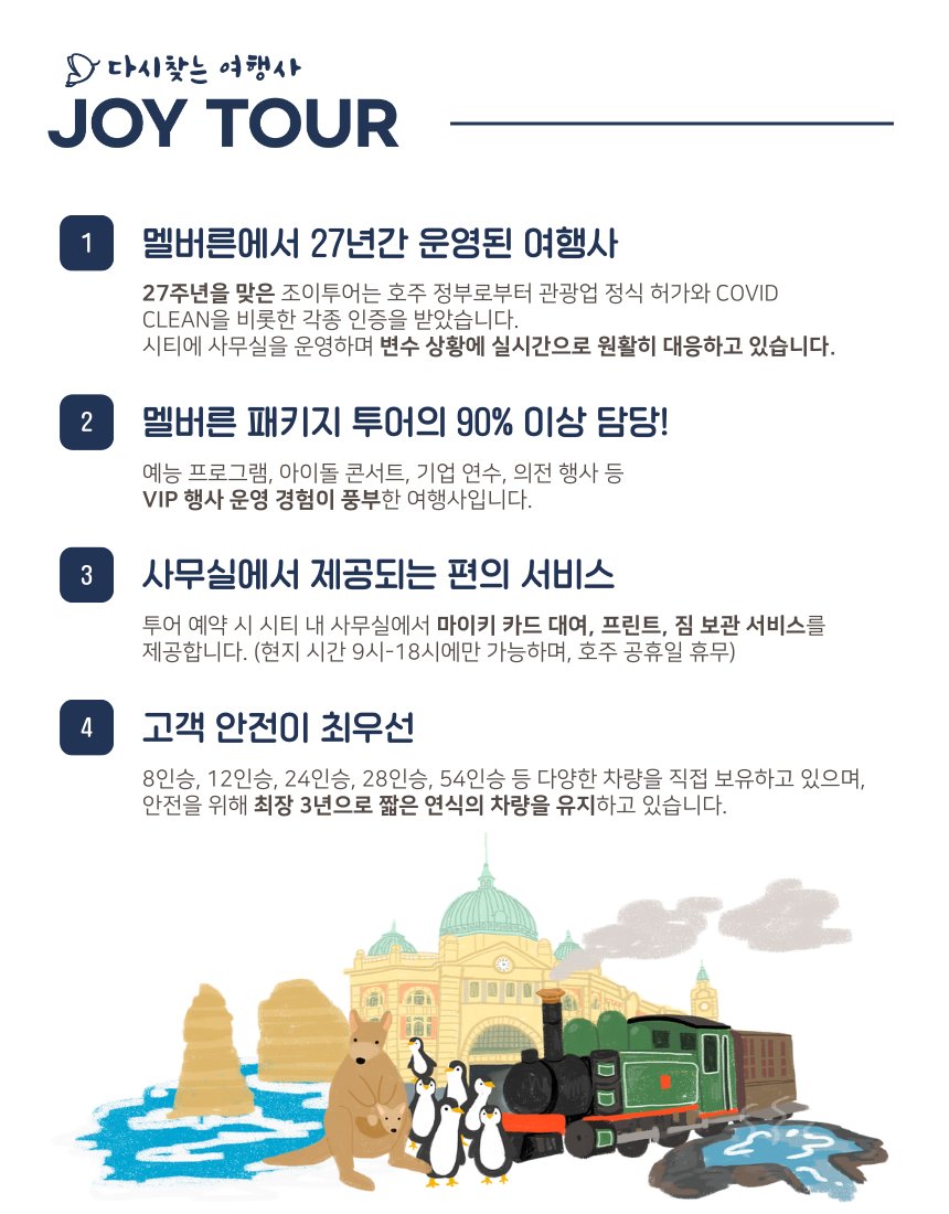 ✔️ 조이투어는 멜버른 Quality Tourism 인증을 받은 한인 업체로