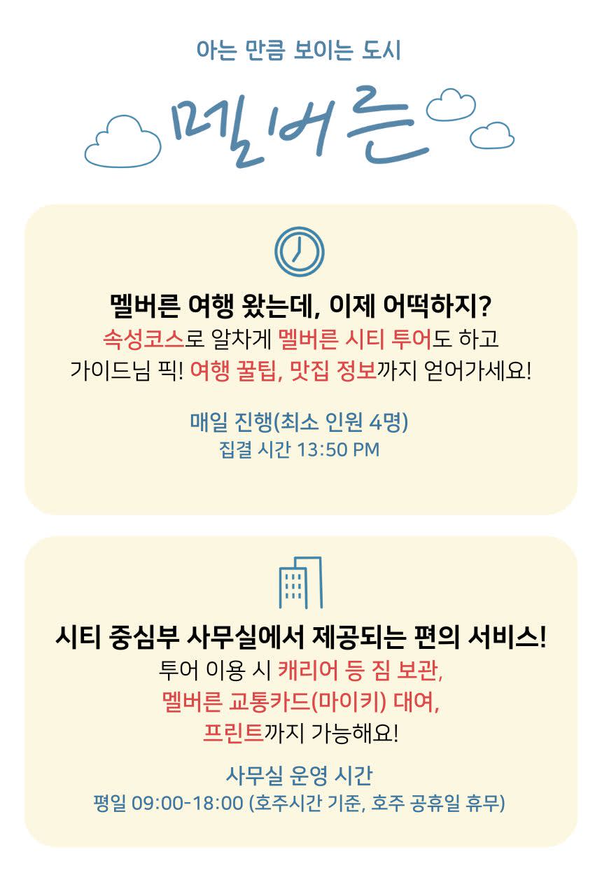 멜버른 도착 첫 날, 이제 뭐하지? 고민된다면 지금 바로 예약하세요!