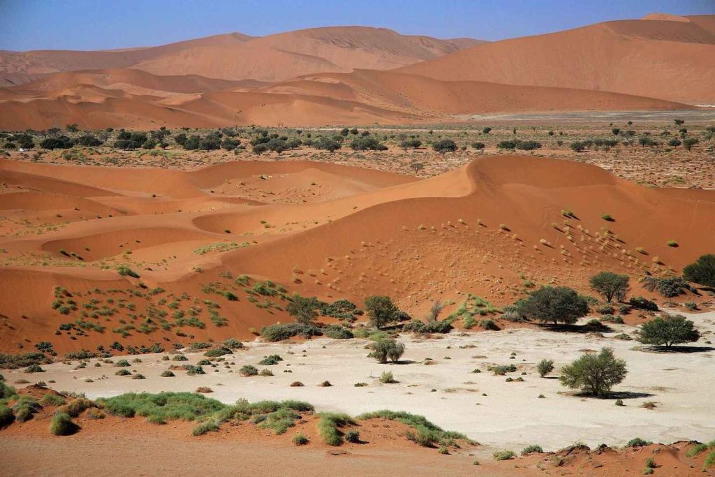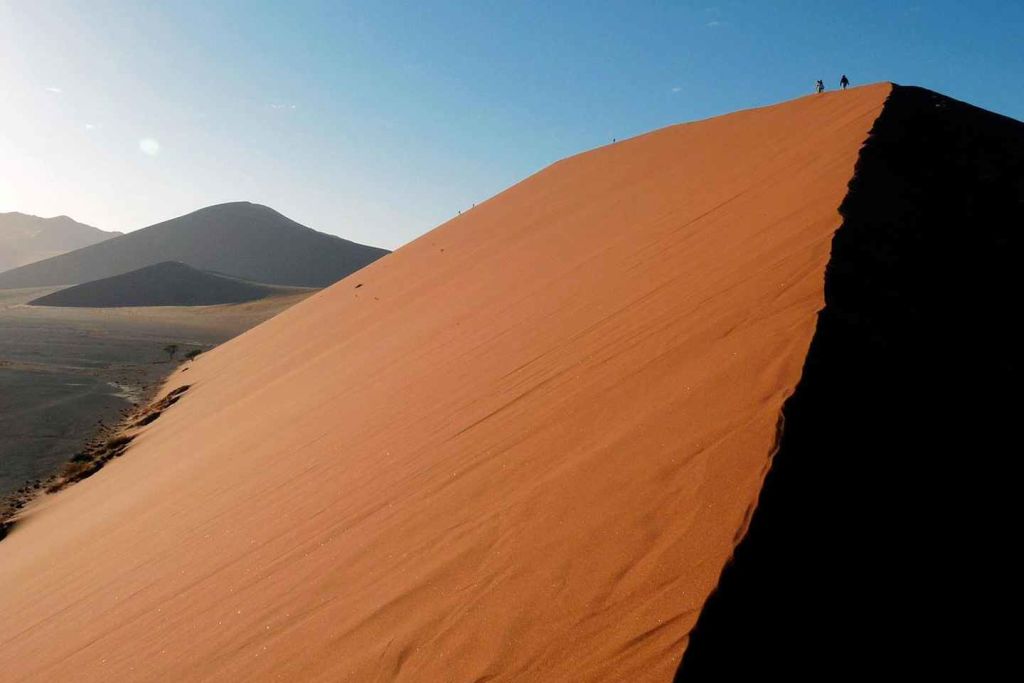 마지막 5km 구간은 고대 차우찹 강바닥으로 들어가서 죽은 낙타 가시 나무가 눈에 띄는 모래로 완전히 둘러싸인 고대 팬인 소서스블레이(Sossusvlei)로 향합니다.
