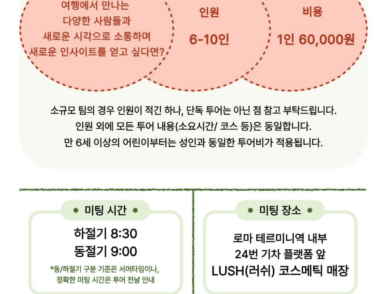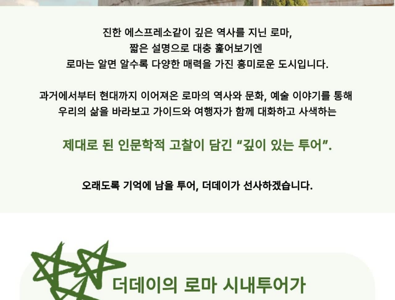 역사적 배경 지식과 숨겨진 이야기를 들으며 단순한 관광을 넘어선 깊이 있는 여행이 가능합니다 차량으로는 접근하기 힘든 로마의 골목 구석구석을 걸으며 현지 분위기를 만끽할 수 있습니다