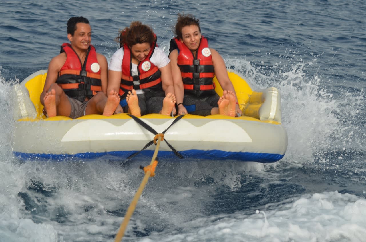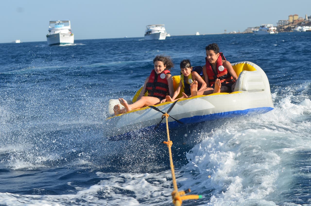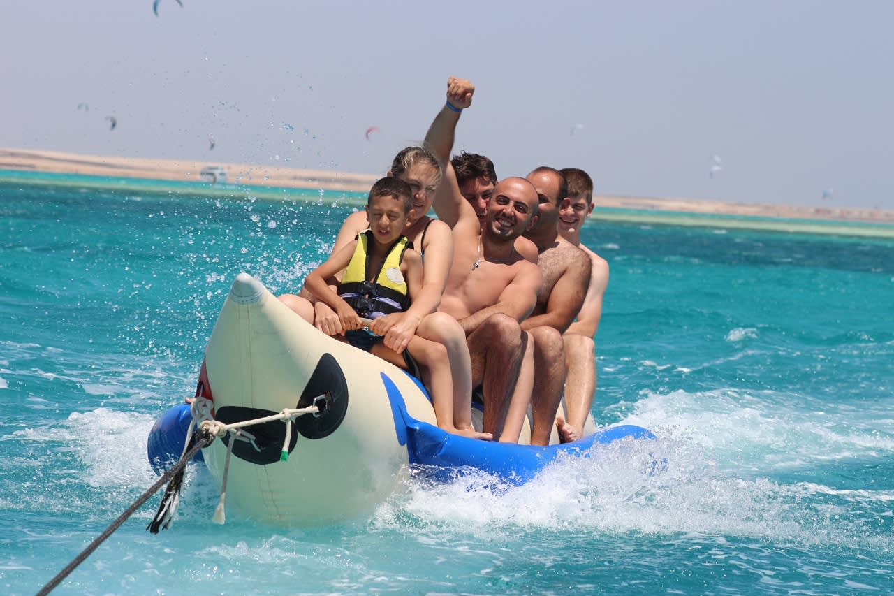 • 홍해의 아름다움이 빛나는 후르가다에서 잊지 못할 모험을 떠날 준비를 하세요! 스릴 넘치는 바나나 보트 라이딩으로 액티비티 가득한 하루를 시작하세요. 강력한 스피드보트에 이끌려 수정처럼 맑은 바다를 질주하며 짜릿함을 느껴보세요. 파도를 넘나들며 친구 또는 가족과 함께 웃고 즐기며 신나는 시간을 만끽하세요.