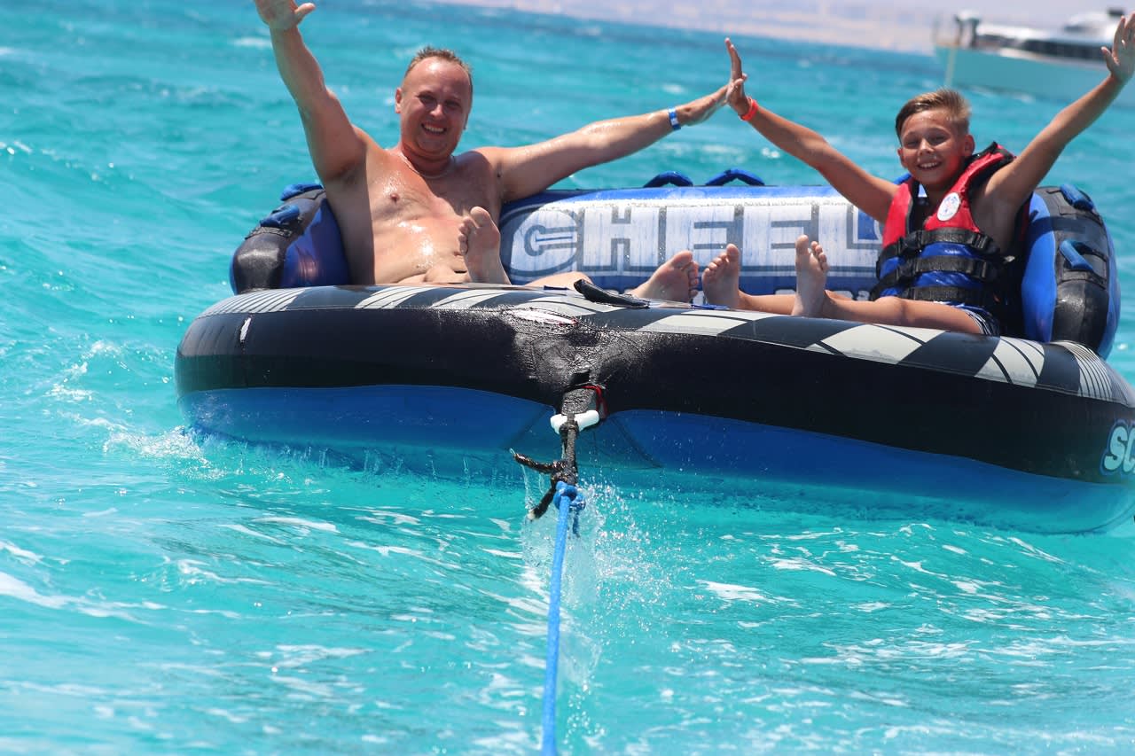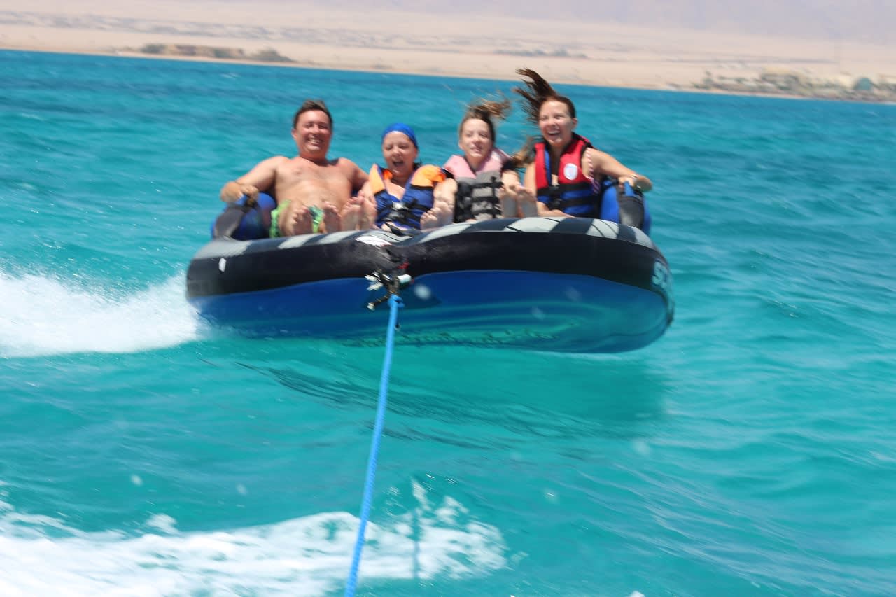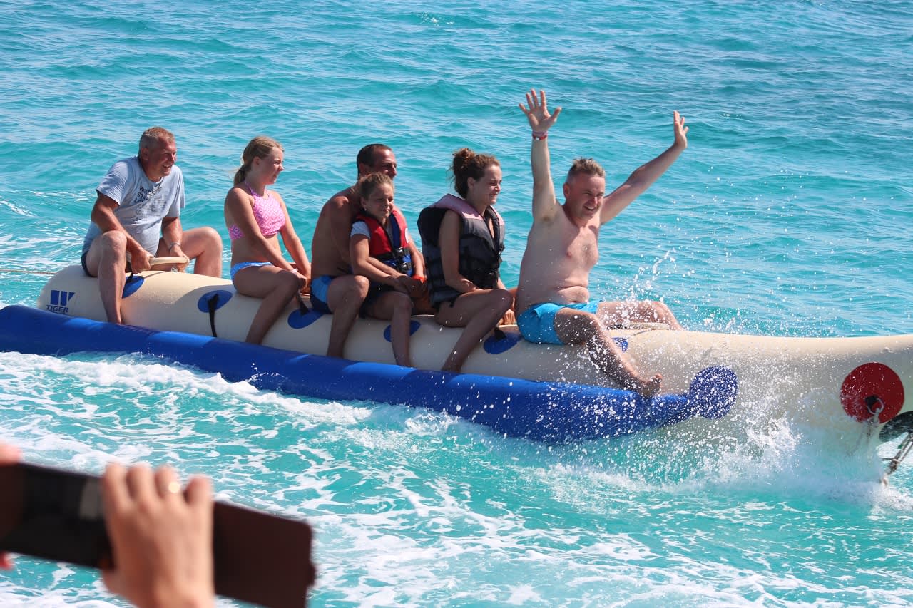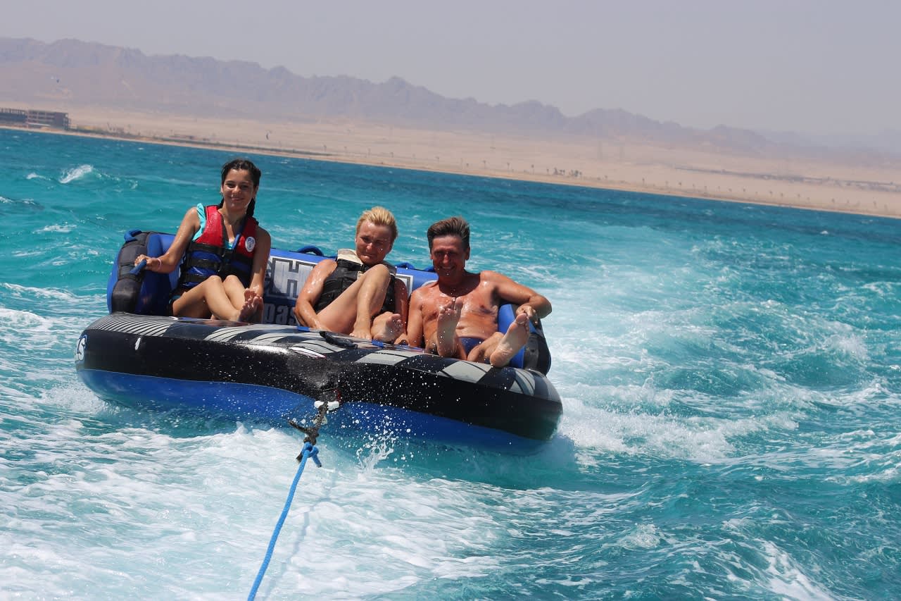 • 홍해의 아름다움이 빛나는 후르가다에서 잊지 못할 모험을 떠날 준비를 하세요! 스릴 넘치는 바나나 보트 라이딩으로 액티비티 가득한 하루를 시작하세요. 강력한 스피드보트에 이끌려 수정처럼 맑은 바다를 질주하며 짜릿함을 느껴보세요. 파도를 넘나들며 친구 또는 가족과 함께 웃고 즐기며 신나는 시간을 만끽하세요.