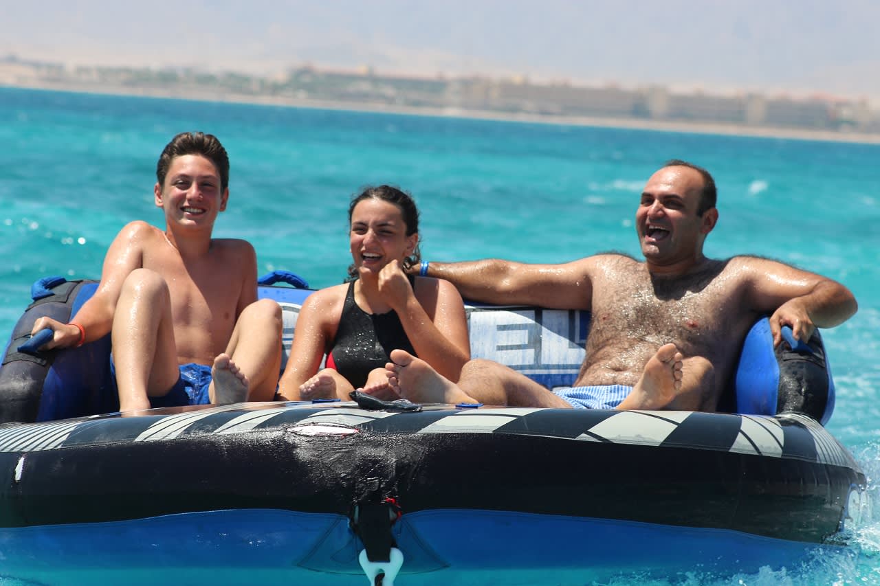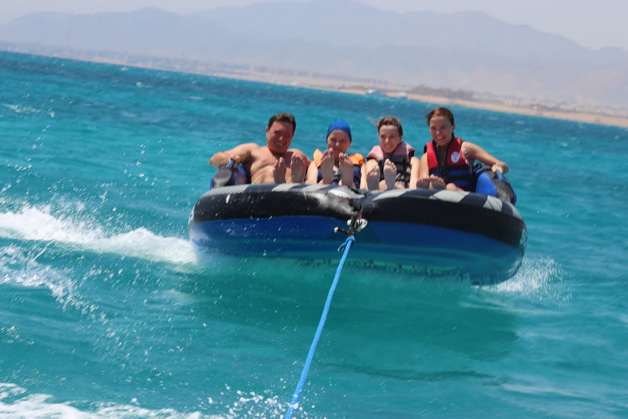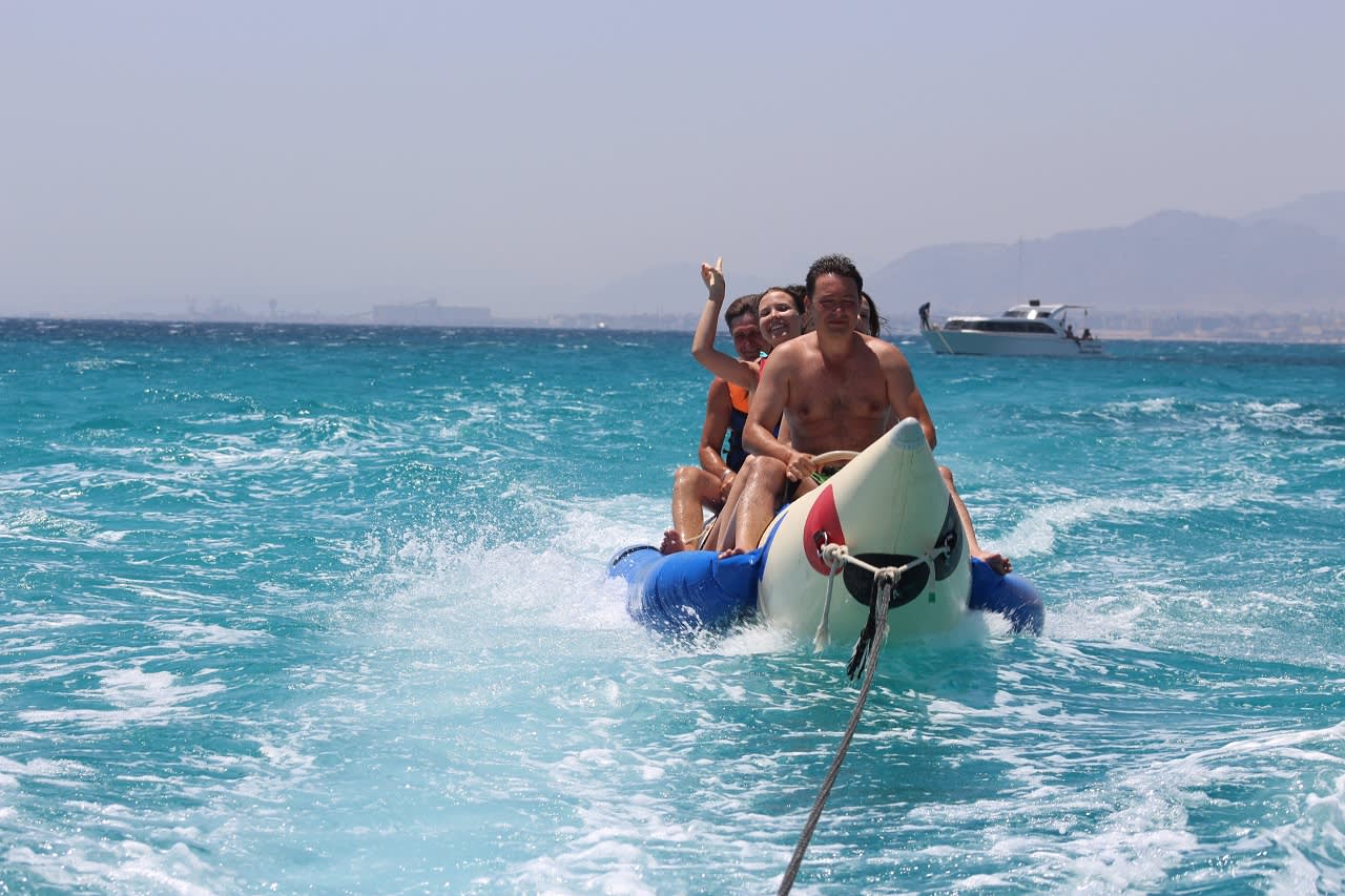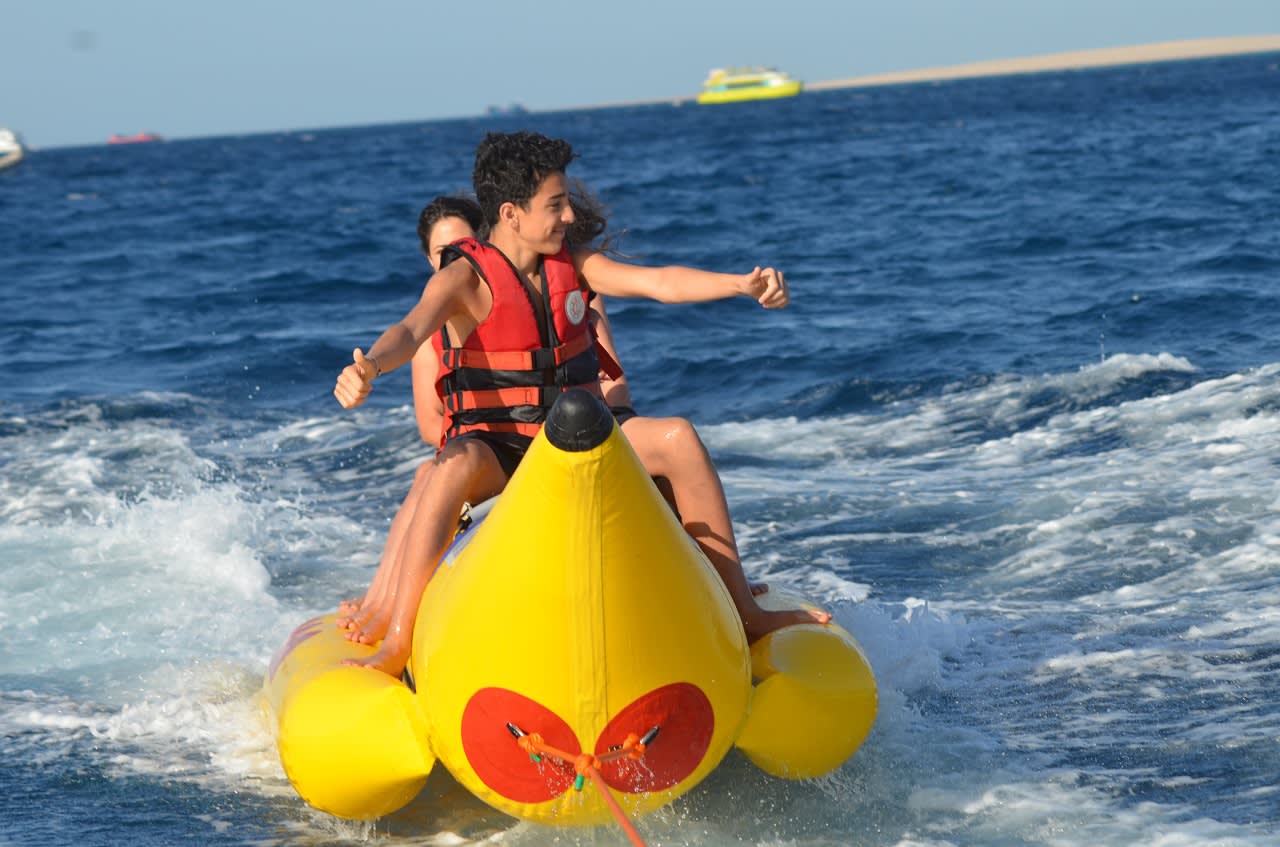 * 바나나 보트: 스피드보트에 몸을 싣고 홍해 위를 질주하며 신나는 하루를 시작하세요. 가족, 친구들과 함께 물보라를 일으키며 즐거운 시간을 보내기에 안성맞춤입니다. 웃음이 끊이지 않는 신나는 모험을 떠나보세요.