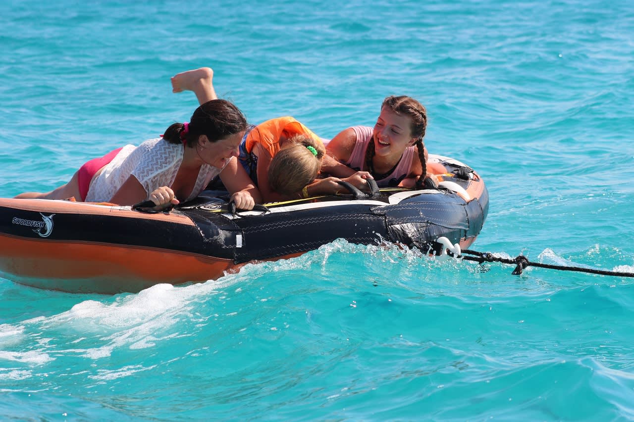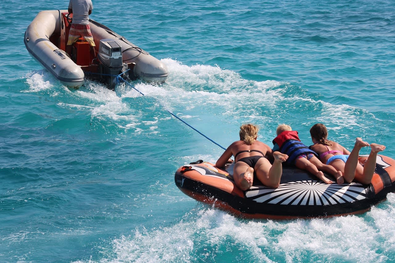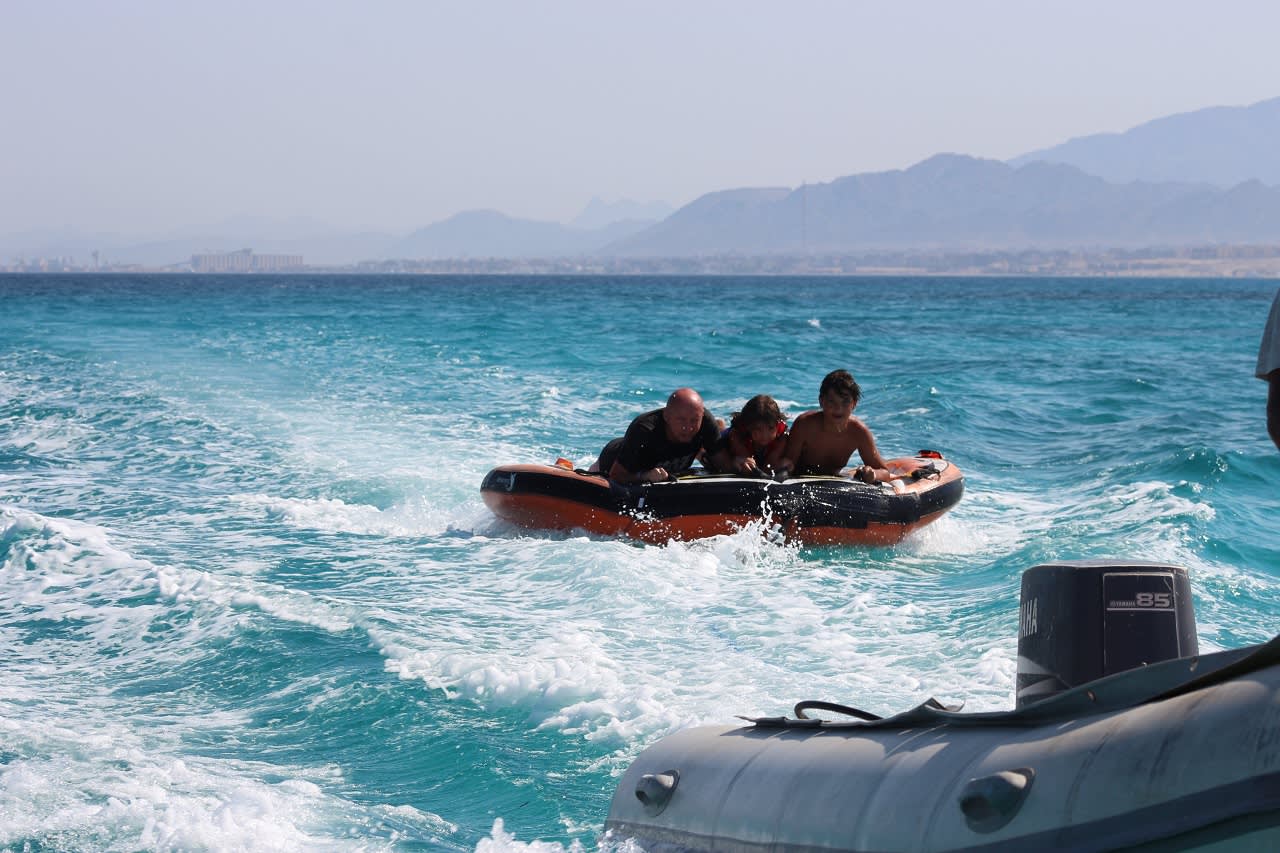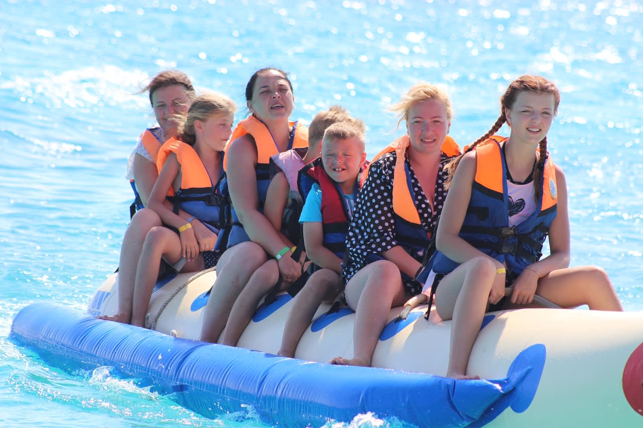 * 바나나 보트: 스피드보트에 몸을 싣고 홍해 위를 질주하며 신나는 하루를 시작하세요. 가족, 친구들과 함께 물보라를 일으키며 즐거운 시간을 보내기에 안성맞춤입니다. 웃음이 끊이지 않는 신나는 모험을 떠나보세요.