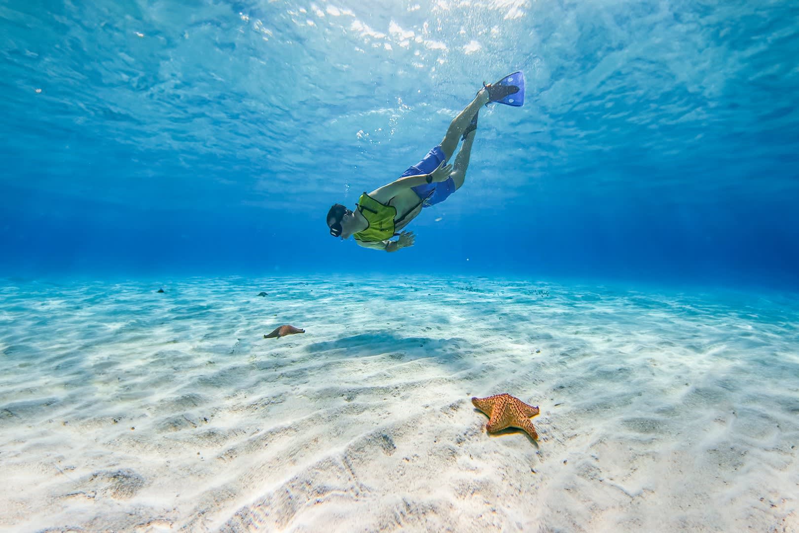 * 불가사리로 가득한 엘 시엘로 베이의 아름다운 경치를 감상해 보세요.