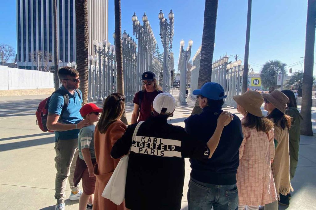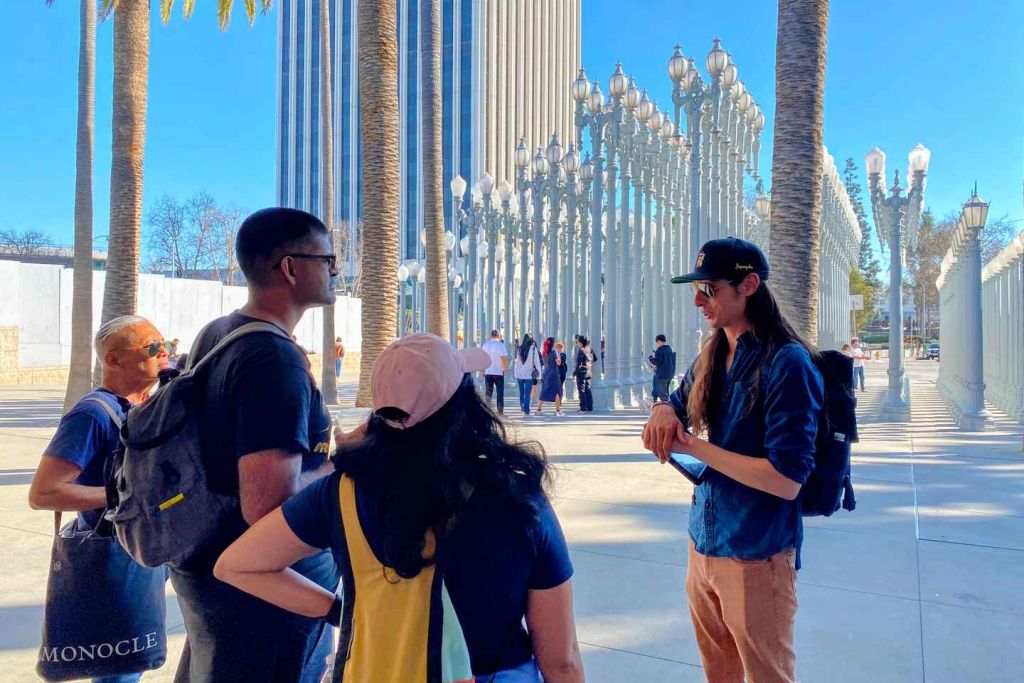 다음으로 로스앤젤레스 카운티 미술관(LACMA)으로 이동합니다. 이곳에서는 유명한 '어반 라이트' 설치 작품을 포함한 아름다운 야외 전시물을 감상할 수 있습니다. 이 복원된 거리 등대 컬렉션은 수많은 영화와 TV 프로그램에 등장한 LA의 상징적인 랜드마크로, 기억에 남는 사진을 찍기 완벽한 장소입니다!