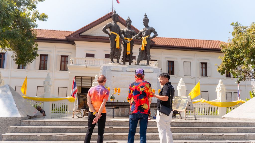 먼저, 삼왕상 기념비에서 만나 안전 브리핑을 받고 태국에서 두 번째로 큰 도시인 치앙마이의 설립자이자 란나 왕국의 초대 왕인 멩라이 왕에 대해 알아봅니다.