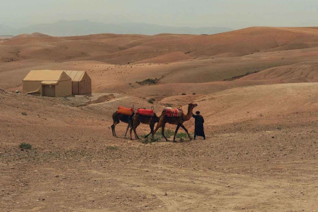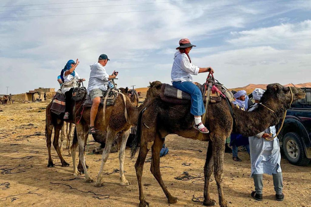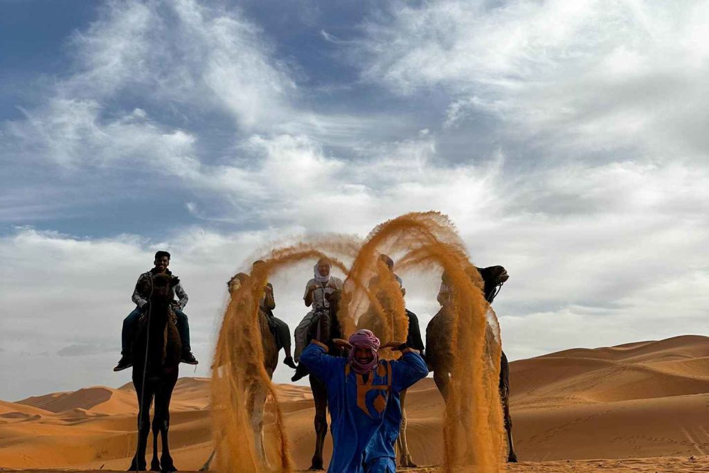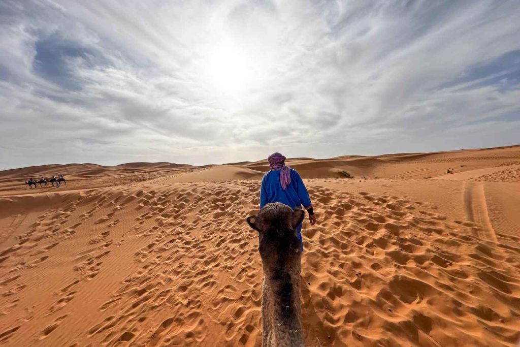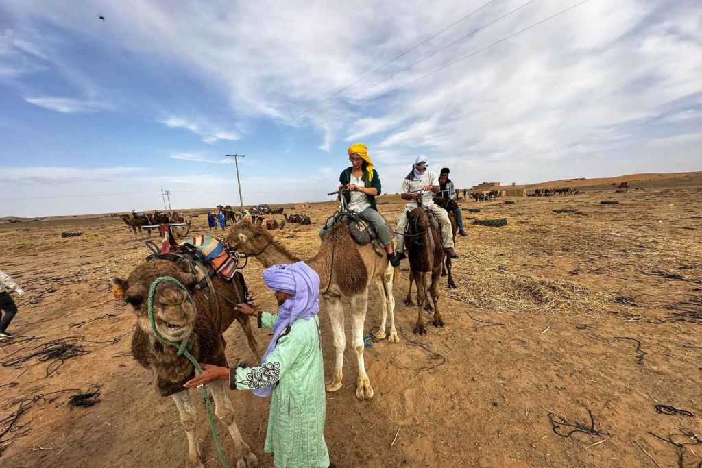 아그데즈의 오아시스로 계속 이동한 후 드라 계곡의 대추야자 나무와 야자수 사이로 드라이브를 즐겨보세요. 도중에 요새화된 카스바를 감상해 보세요. 자가라에 도착하면 낙타 캐러밴을 만나 낙타를 타고 사막의 모래를 물들이는 석양을 바라보며 모래 언덕 위를 달려보세요.
