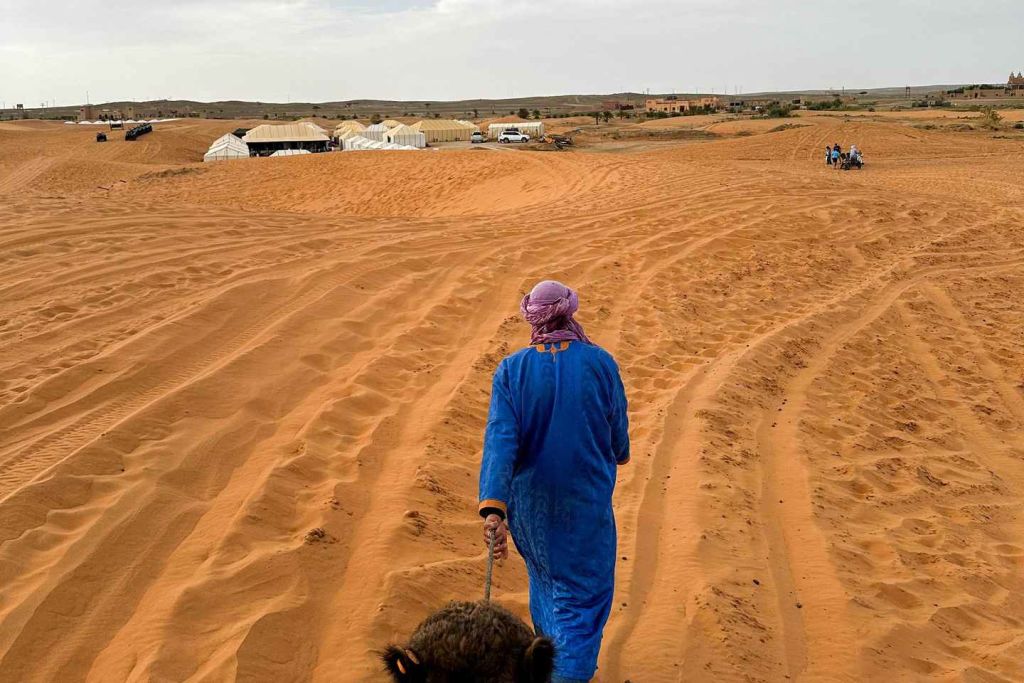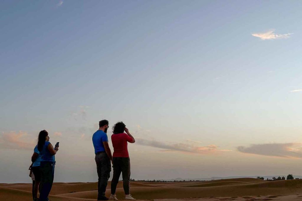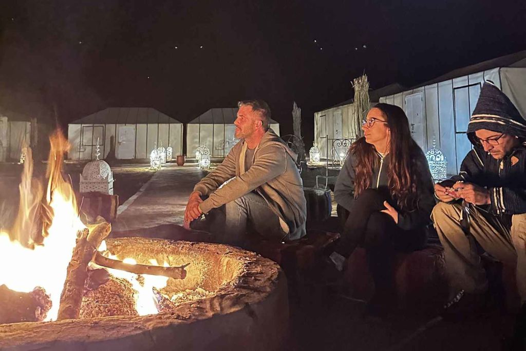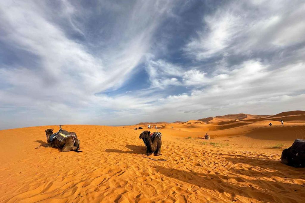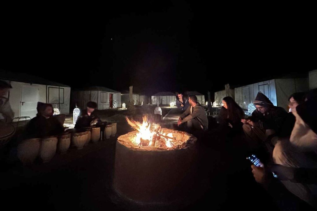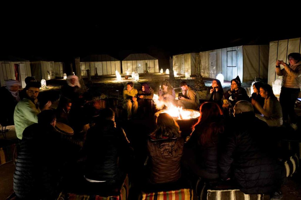 그런 다음 어두워지기 직전에 사하라 사막 캠프로 이동하세요. 텐트에 여장을 풀고 주변 사막 풍경을 둘러보며 자유 시간을 보내세요. 노마드 호스트가 탐탐 북을 치며 캠프파이어를 즐기는 동안 별빛 아래에서 저녁 식사가 제공됩니다.