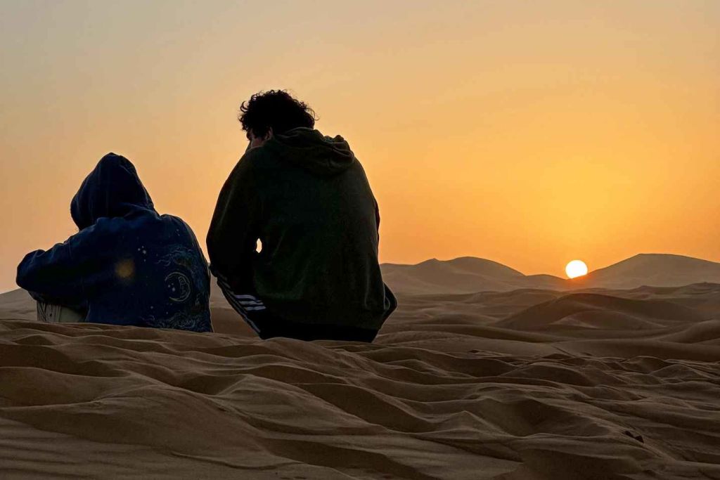 사막 일출의 마법을 경험하기 위해 일찍 일어나세요(선택 사항). 그런 다음 아침 식사를 즐긴 후 낙타 안장에 올라 주요 도로로 돌아가기 위해 다시 낙타에 올라타세요.