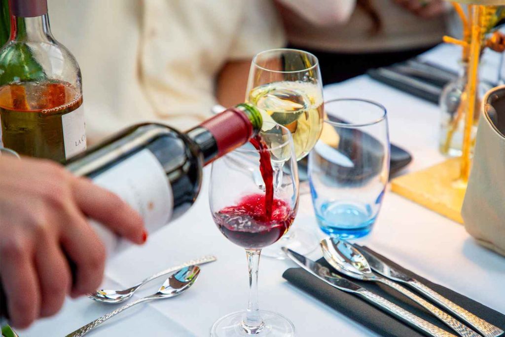 와인 및 기타 음료와 함께 제공되는 4코스 메뉴의 향연