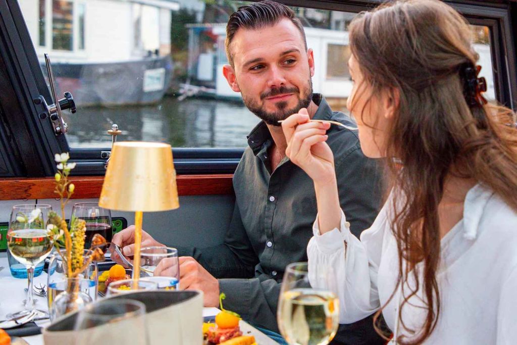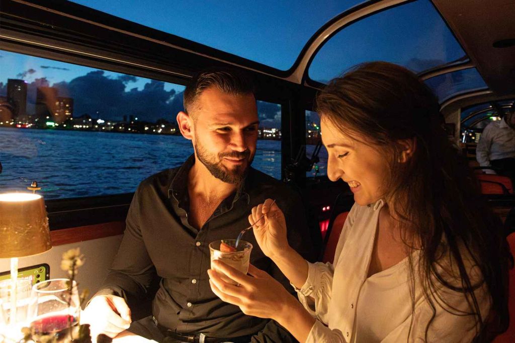 크루즈를 타면 갓 만든 요리로 구성된 4코스 저녁 식사가 엄선된 와인과 청량음료와 함께 제공됩니다. 다국어 해설이 구 항구 지역, 안네 프랑크 하우스 등 크루즈에서 만나는 주요 명소에 대해 설명해 드립니다.