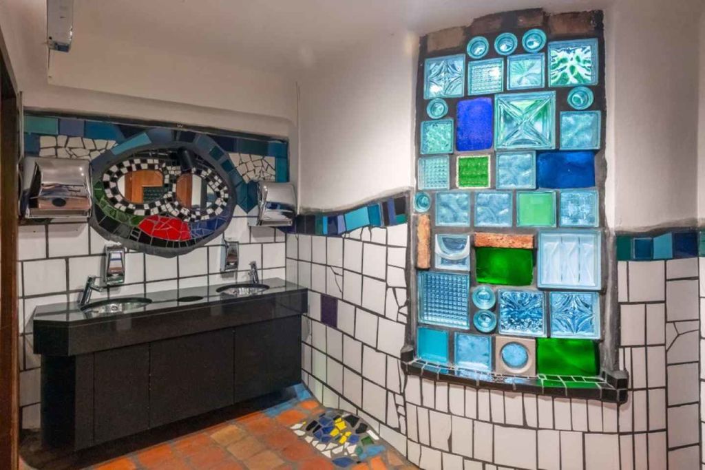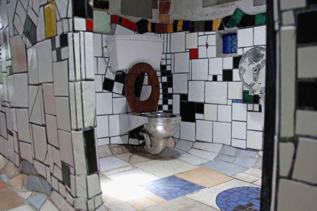 그런 다음 차로 조금만 이동하면 세계적으로 유명한 "훈데르트바서 화장실"이 있는 가와카와로 이동하는데, 오스트리아 출신 예술가 프리덴슈라이히 훈데르트바서가 디자인한 몇 안 되는 공중 화장실 중 하나로 지역 사회의 재활용 자재를 사용한 것이 특징입니다.