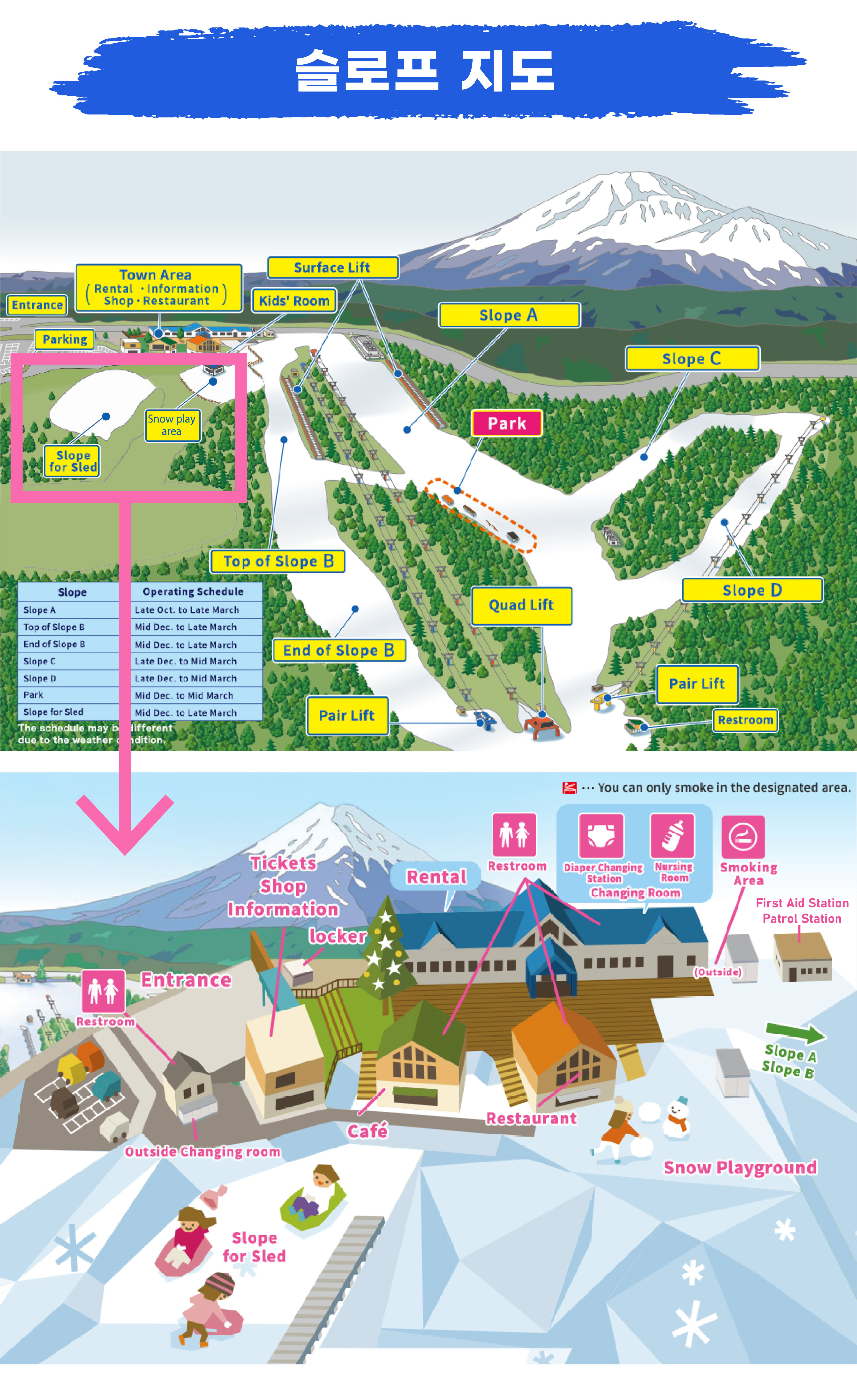 썰매장, 초급 슬로프부터 숙련자 코스까지 모두가 만족할 만한 코스의 스키장!