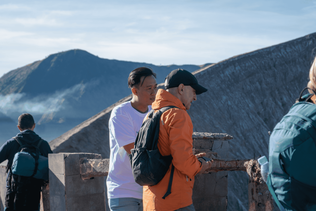 이젠산으로의 하이킹은 새벽 2시에 시작되며, 블루 파이어 지점까지 2시간 동안 하이킹을 즐깁니다. 그런 다음 분화구 가장자리에서 일출을 감상하고 출발 지점으로 돌아가 페리 터미널로 이동합니다. 페리 터미널에 오전 9시쯤 도착합니다.