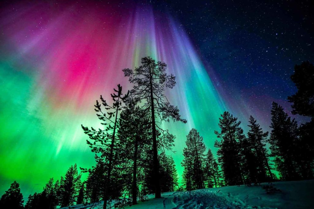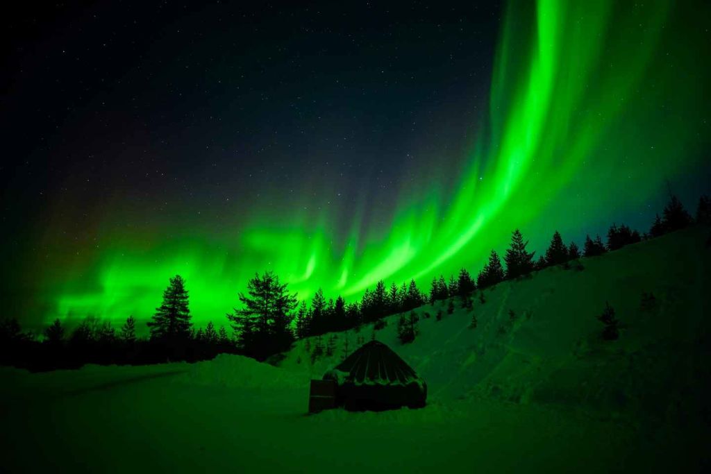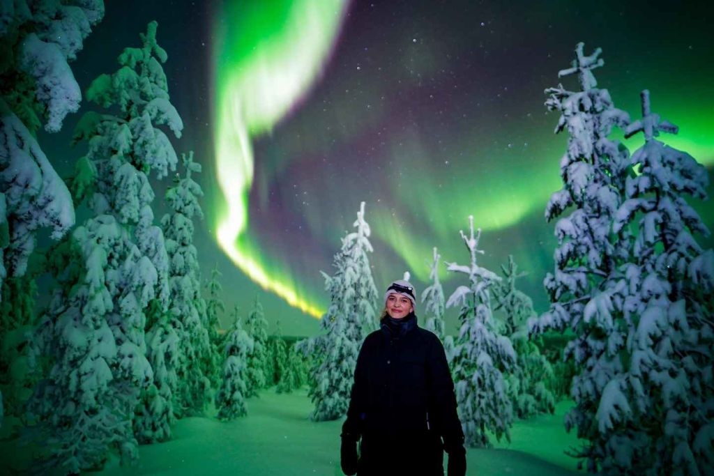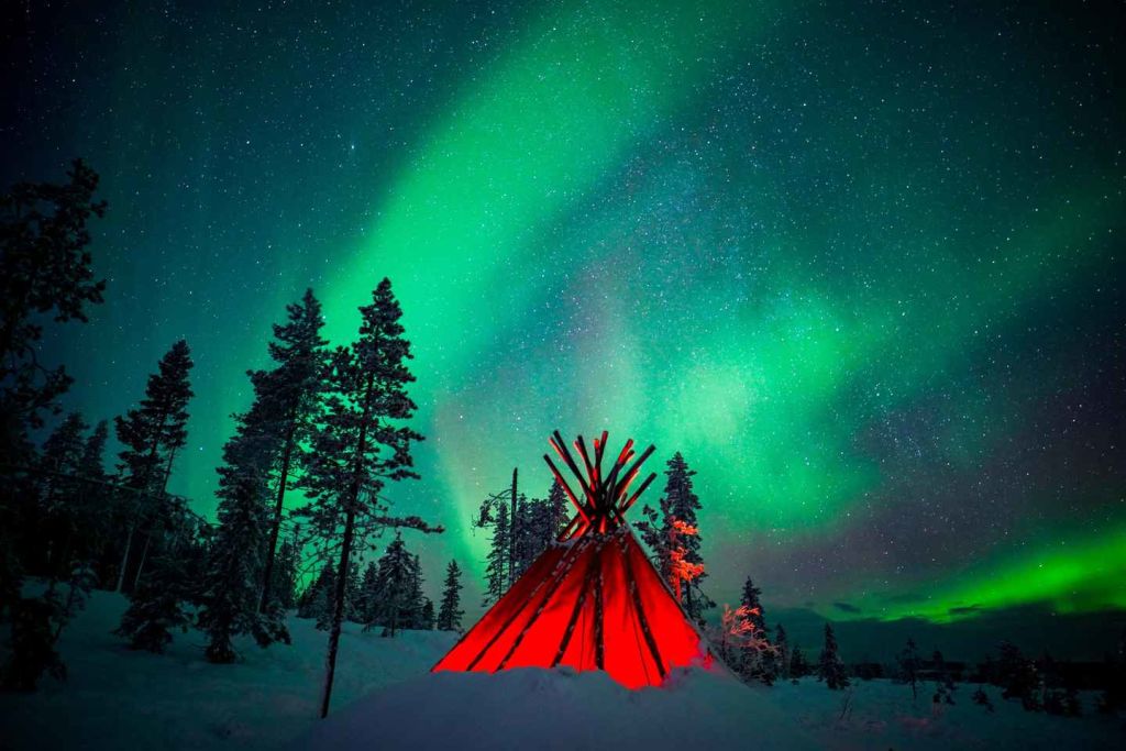 핀란드 대자연에서 춤추는 오로라 감상하기