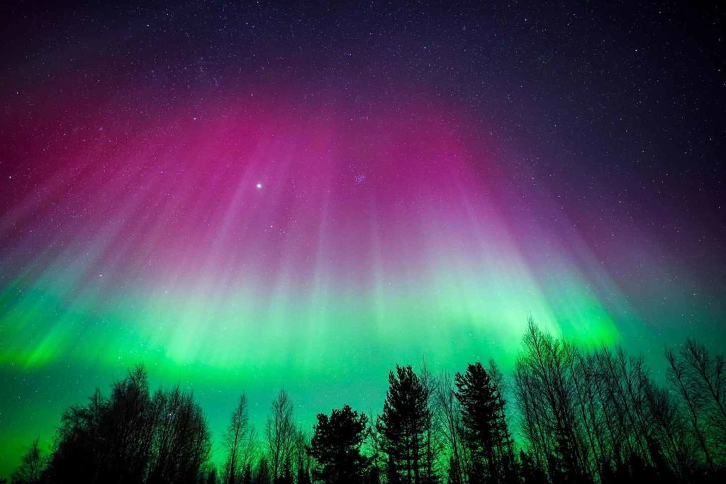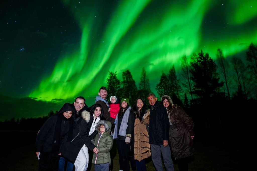 외부에서 보내는 시간이 많을수록 빛을 볼 수 있는 기회가 많아진다는 것을 알아두세요. 보통 얼어붙은 거대한 호수나 강 한가운데에서 오로라를 볼 수 있습니다.