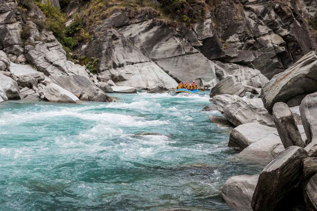 급류 사이사이에 잔잔한 물과 협곡의 자연미를 즐겨 보세요. 강에서 수영을 하며 더위를 식히거나 햇볕 아래서 휴식을 취하세요. 퀸즈타운의 베이스에 도착하기 전에 도전적인 캐스케이드 래피드에서 래프팅 모험을 마무리하세요.