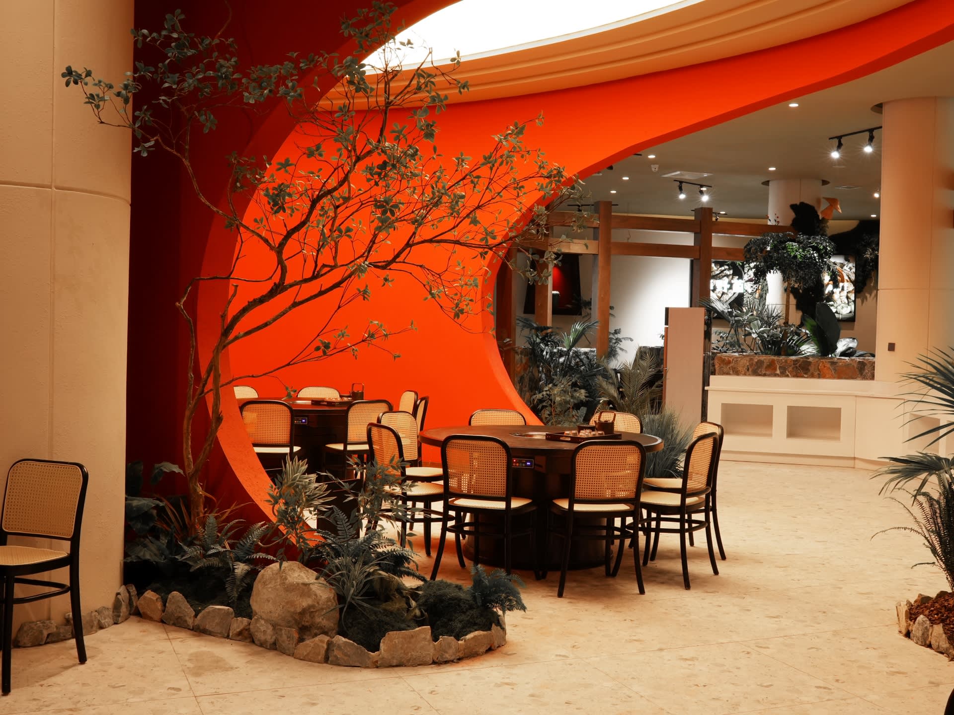 * 숲속의 비경, 은은한 풍경: 레스토랑은 "숲"과 "새로운 티베트 스타일"을 융합한 독특한 인테리어 스타일을 채택했습니다. * 원목, 녹색 식물, 티베트족 요소의 절묘한 조합은 마치 맑고 깨끗한 티베트 숲 속에 있는 듯한 편안한 분위기를 조성하여 특별한 식사 환경을 제공합니다. * 색, 향, 미, 형태, 장인 정신의 표현: 깊고 풍부한 육수, 신선한 재료 본연의 맛을 추구할 뿐만 아니라 요리 플레이팅에도 심혈을 기울여 "색, 향, 미, 형태"의 완벽한 조화를 이루어 시각적인 즐거움과 식사 분위기를 향상시킵니다.