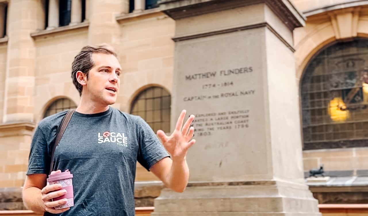 * 퀸 빅토리아 빌딩, 스트랜드 아케이드, 피트 스트리트 몰, ANZAC 기념관, 중앙 우체국을 지나갑니다.