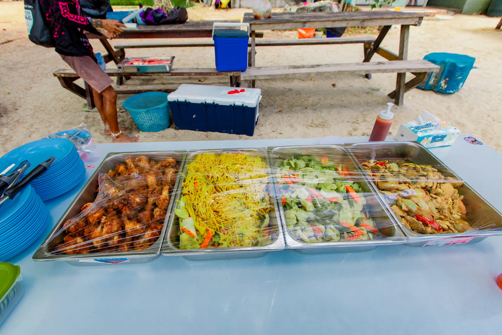 * 평화로운 해변에서 맛있는 태국식 뷔페 점심 식사를 즐겨보세요.