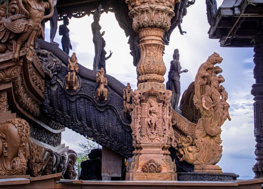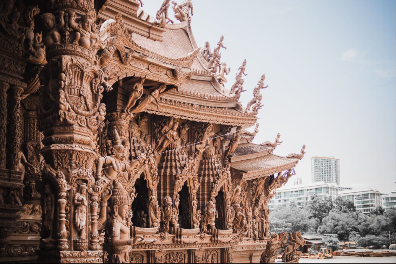 파타야 북쪽 해안에 자리한 진리의 성전은 전통 방식으로 만든 웅장한 목조 건축물이에요.