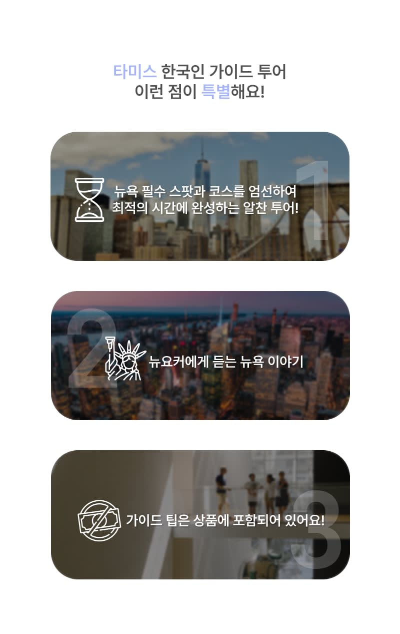 한국인 뉴요커 가이드: 현지 지식과 감성이 풍부한 한국인 가이드가 동행하며 뉴욕의 역사와 숨은 이야기들을 흥미롭게 들려드립니다.