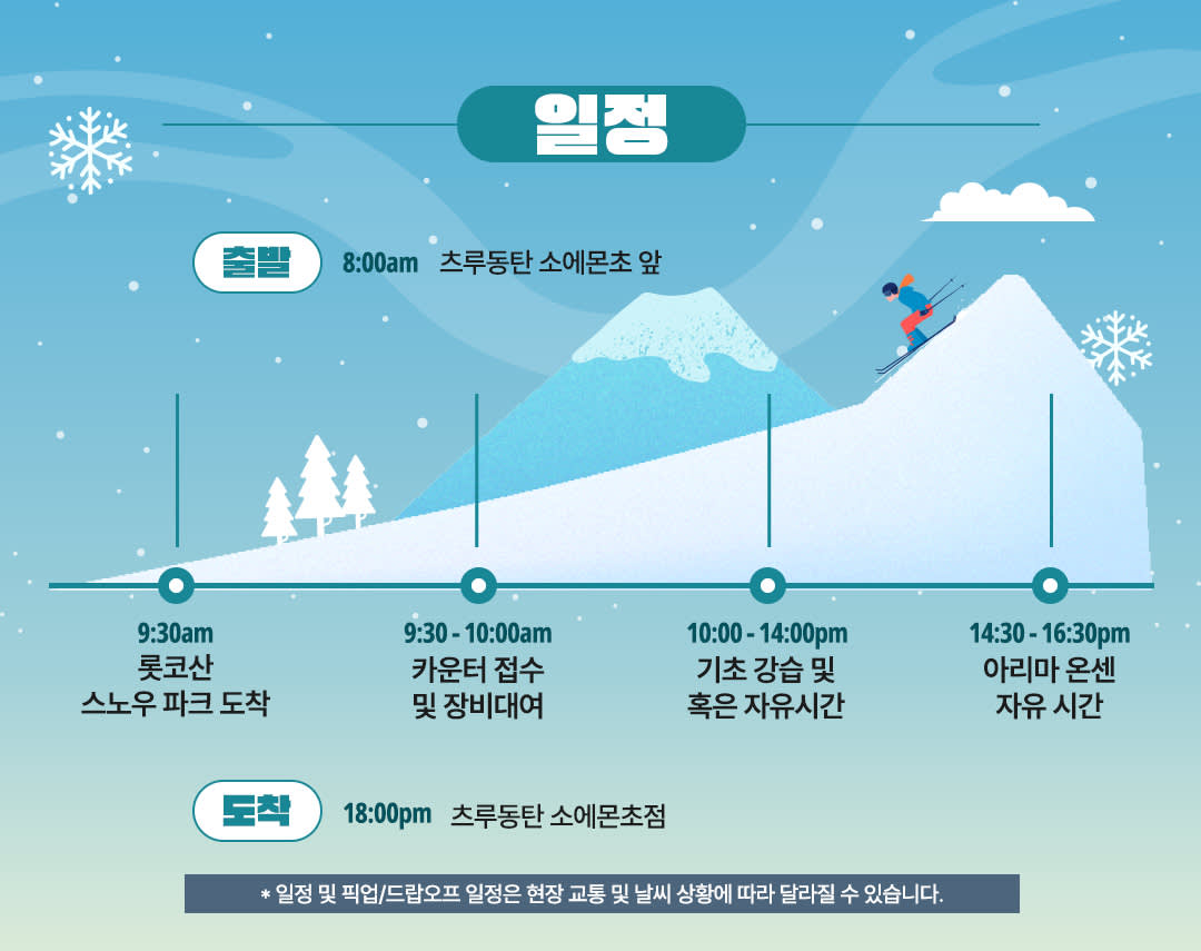 - 마법 같은 첫눈과 스키를 초보자도 쉽게 즐겨보세요.