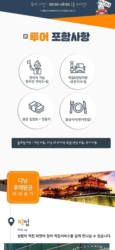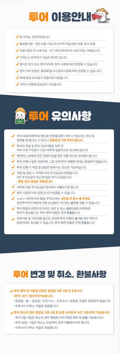 * 카카오채널로 연락주셔야 예약확정 가능하니 반드시 예약시에는 해당 카카오 채널로 연락바랍니다. (카톡검색시 @다낭고스트투어) * 베트남 국/공휴일에는 인건비, 차량비 등이 인상되는 관계로 추가금(현지지불 등)이 발생될 수 있습니다.
