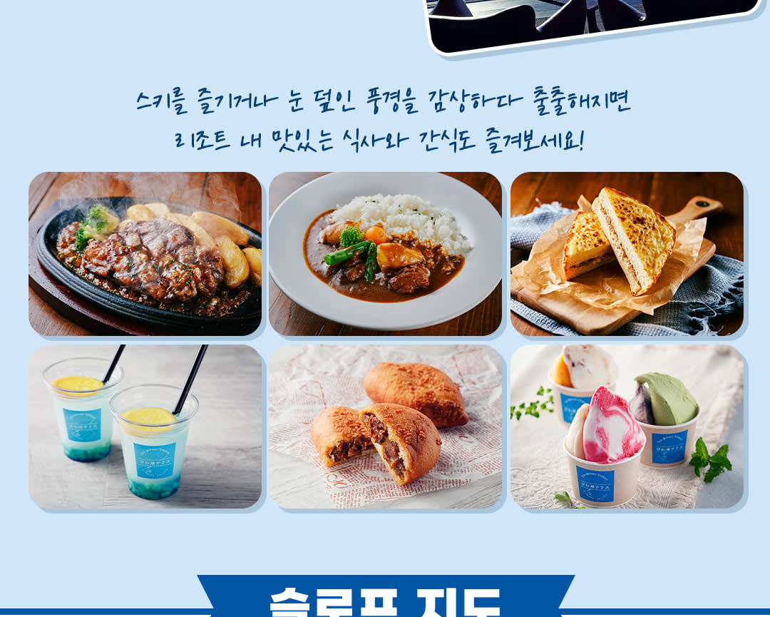 * 모두가 즐거운 시간: 모든 레벨의 슬로프와 키즈 스노우 랜드가 준비되어 있습니다.