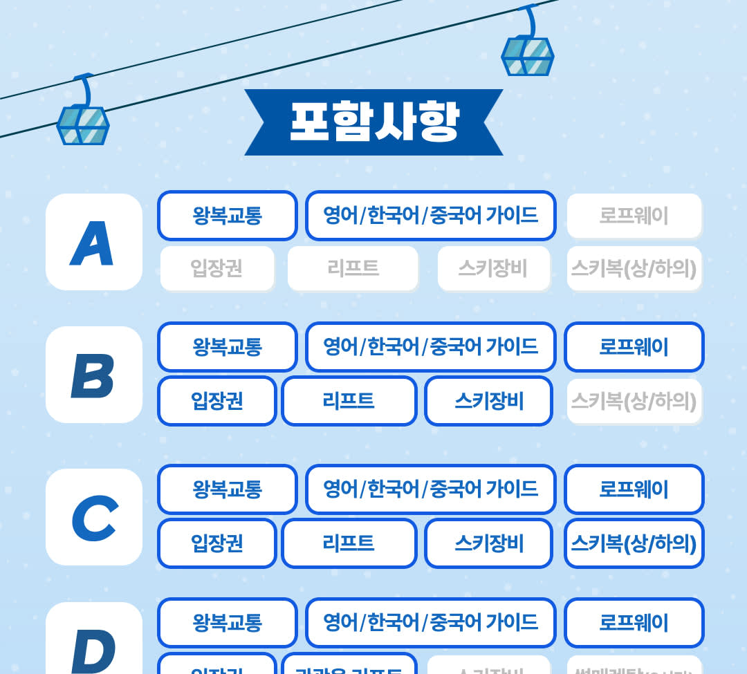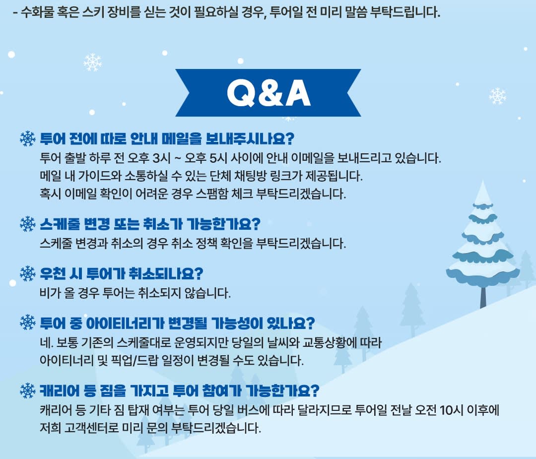 * 다양한 옵션: 셔틀, 스키, 관광, 썰매 등 원하는 대로 선택하세요.