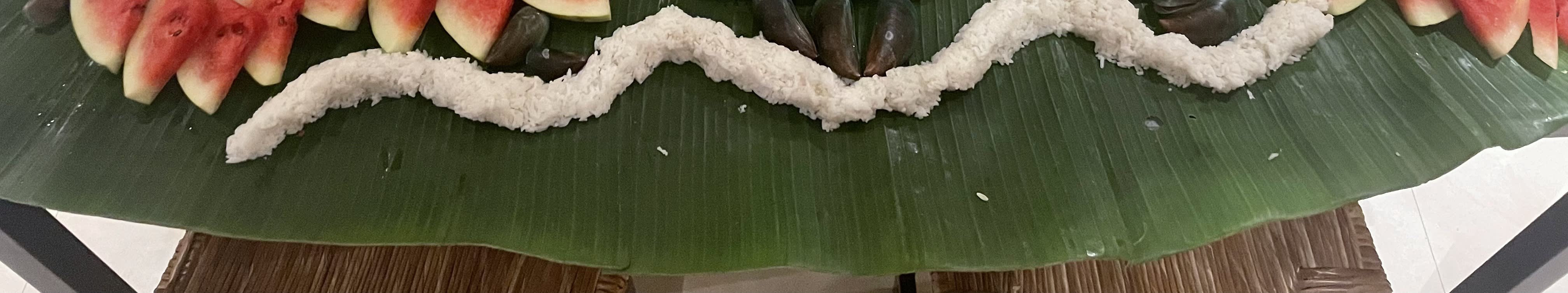 신선한 해산물, 육즙 가득한 고기, 열대 과일 등 다채로운 음식을 바나나 잎 위에 푸짐하게 펼쳐놓고 즐겨보세요.