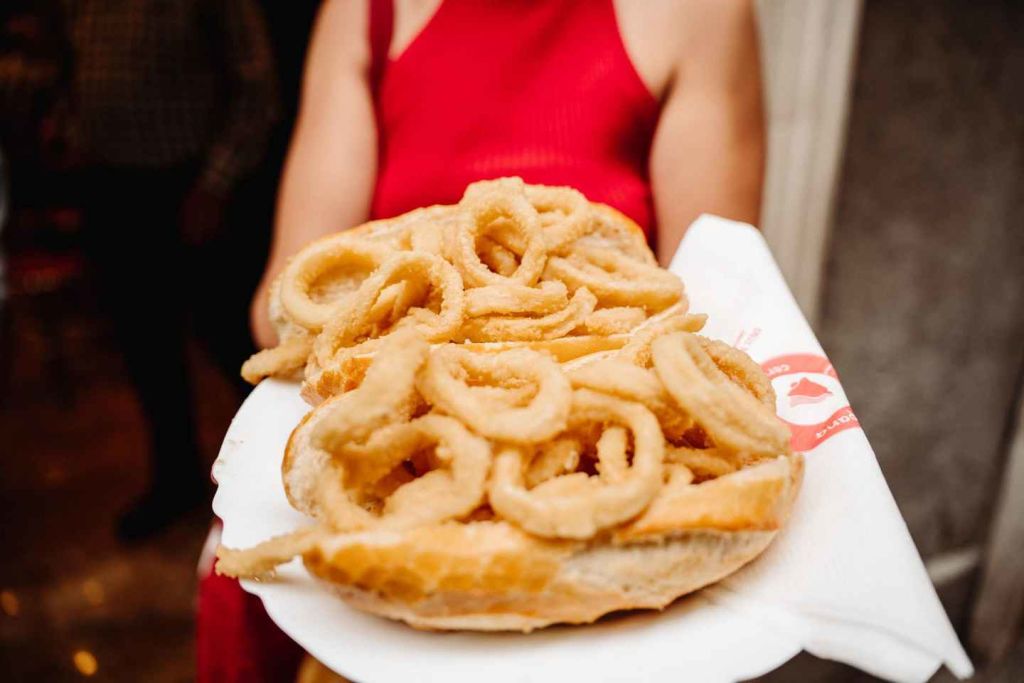마요르 광장에서 꼭 먹어봐야 할 음식은 바로 오징어 샌드위치입니다. 주변 지역 어디에서나 만날 수 있는 음식일지 모르지만, 오늘은 가벼운 바삭한 반죽에 오징어링을 넣어 완벽하게 조리한 최고의 음식을 맛볼 수 있습니다. 현지인들처럼 바 바깥에 서서 맛보세요.