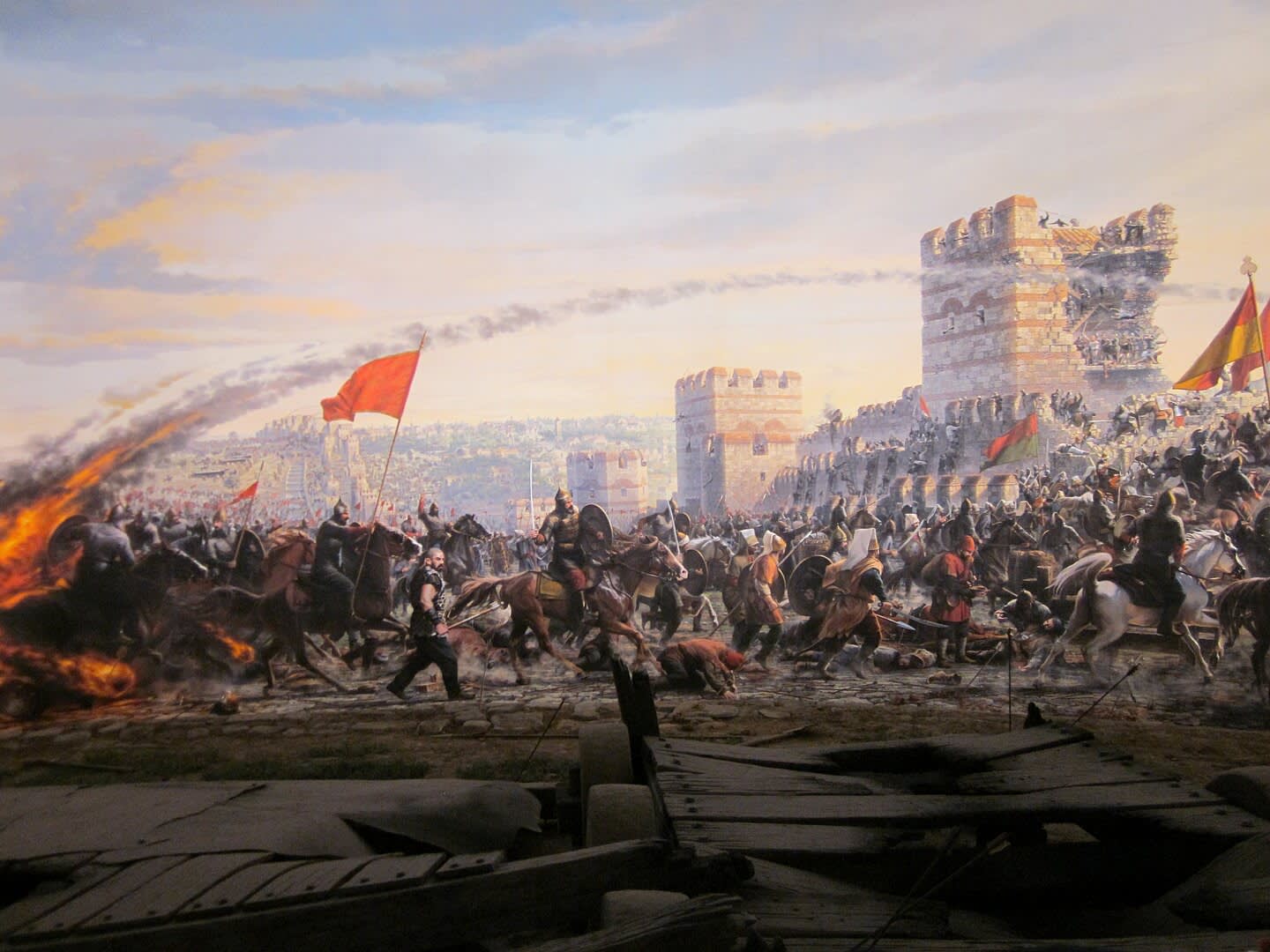 * 파노라마 1453에서 실물과 똑같은 벽화와 음향 효과로 콘스탄티노플 전투를 360도로 체험해 보세요.