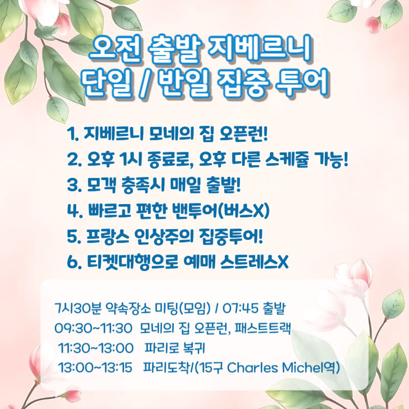 ✨ 모네의 집은 입장 대기줄이 길어 입장시 2~3시간씩 소요되는 경우도 있는데, 진투어 프랑스는 티켓대행을 통해 패스트트랙으로 입장하여 대기없이 입장하십니다.