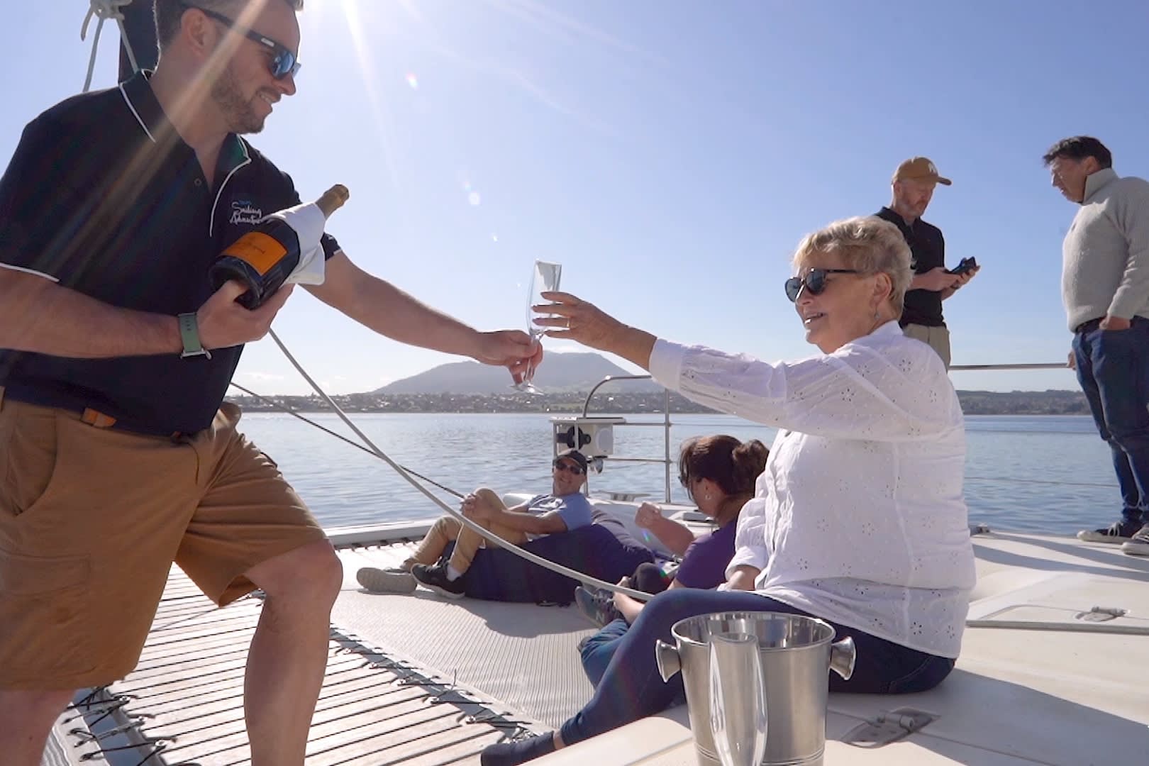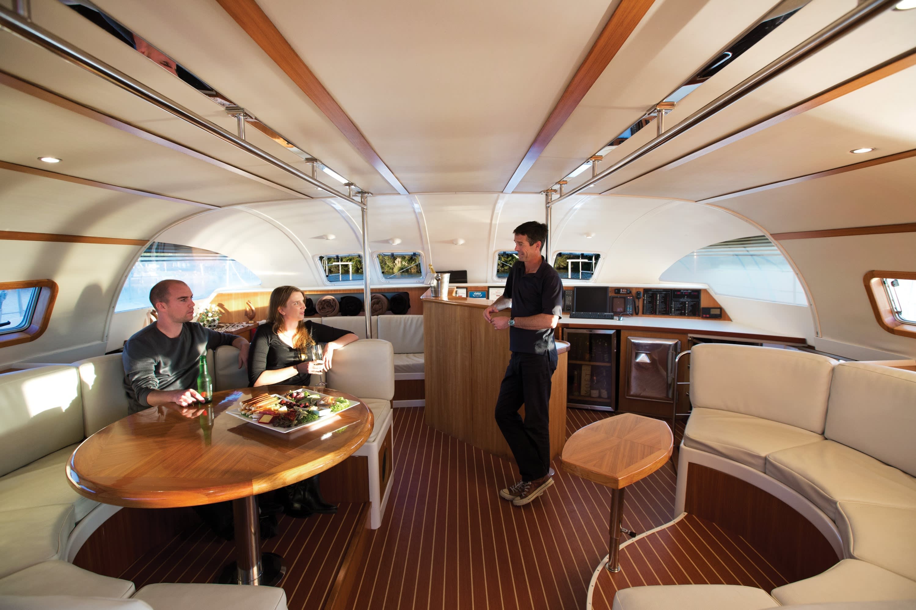 * 아름다운 파노라마 전망을 자랑하는 럭셔리 쌍동선을 타고 잔잔한 타우포 호수를 항해하세요.