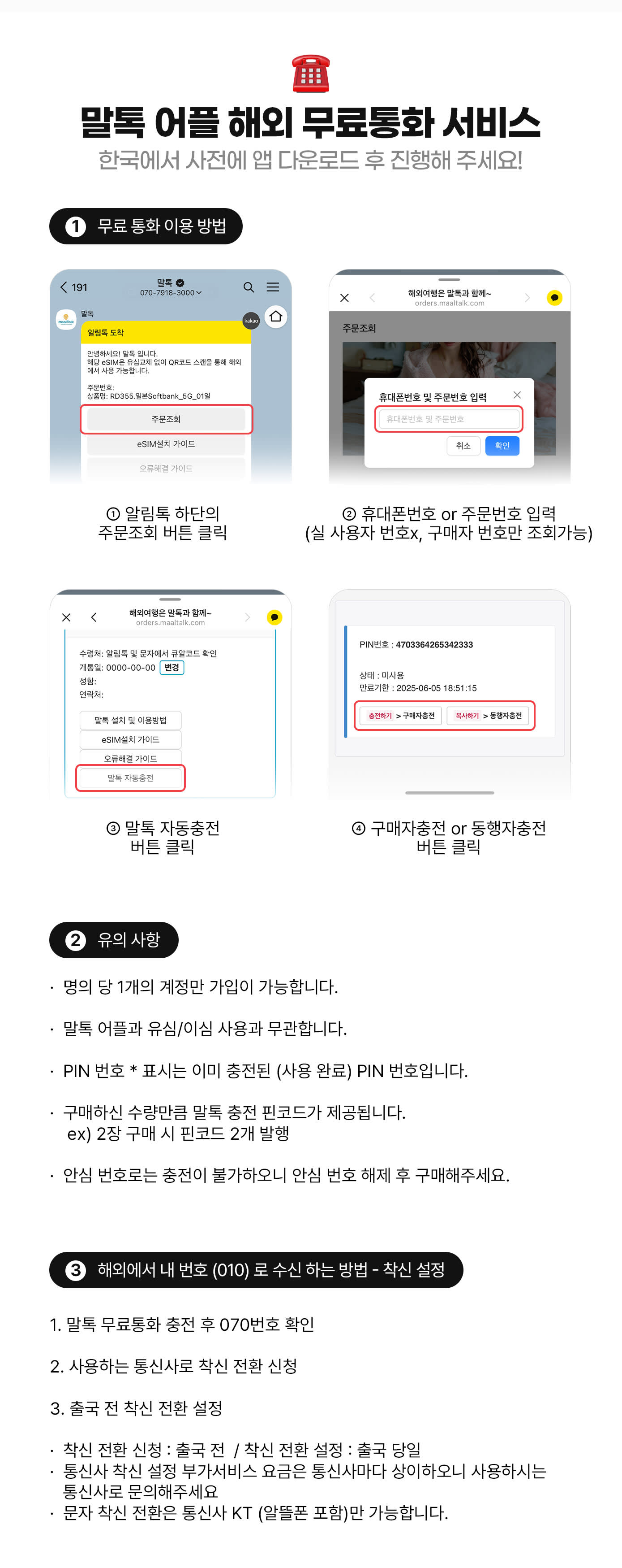 말톡 070번호 무료통화 60분 사용권