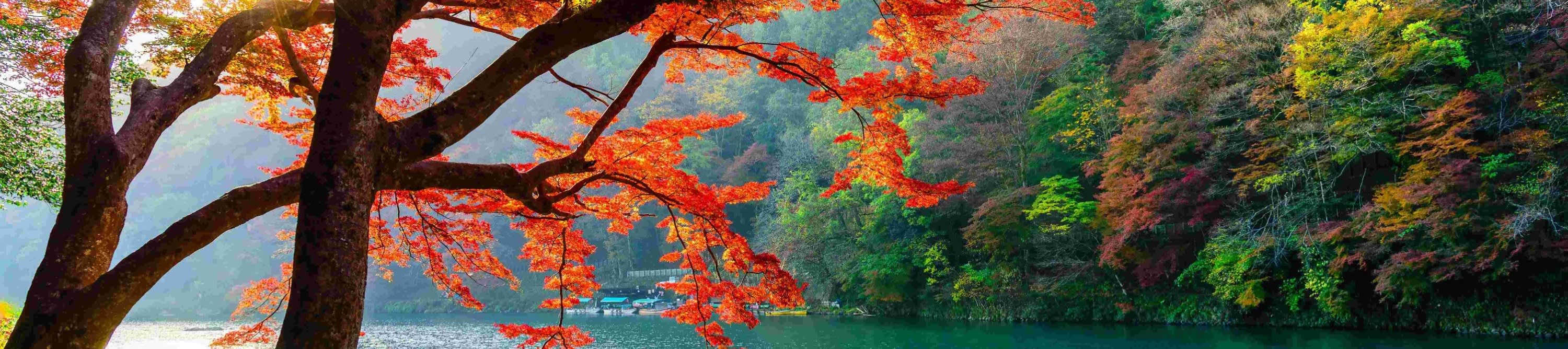 🍁 아라시야마의 그림 같은 풍경, 고요한 물가와 한적한 대나무 숲이 어우러져 자연의 품에 안겨 평화로움과 아름다움을 만끽할 수 있습니다.