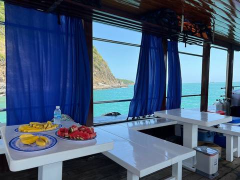 배에서 한식 도시락과 베트남 컵라면을 점심으로 드신 후 남는 시간에 줄 낚시 및 수영을 하고, 호텔로 귀환하는 일정입니다.