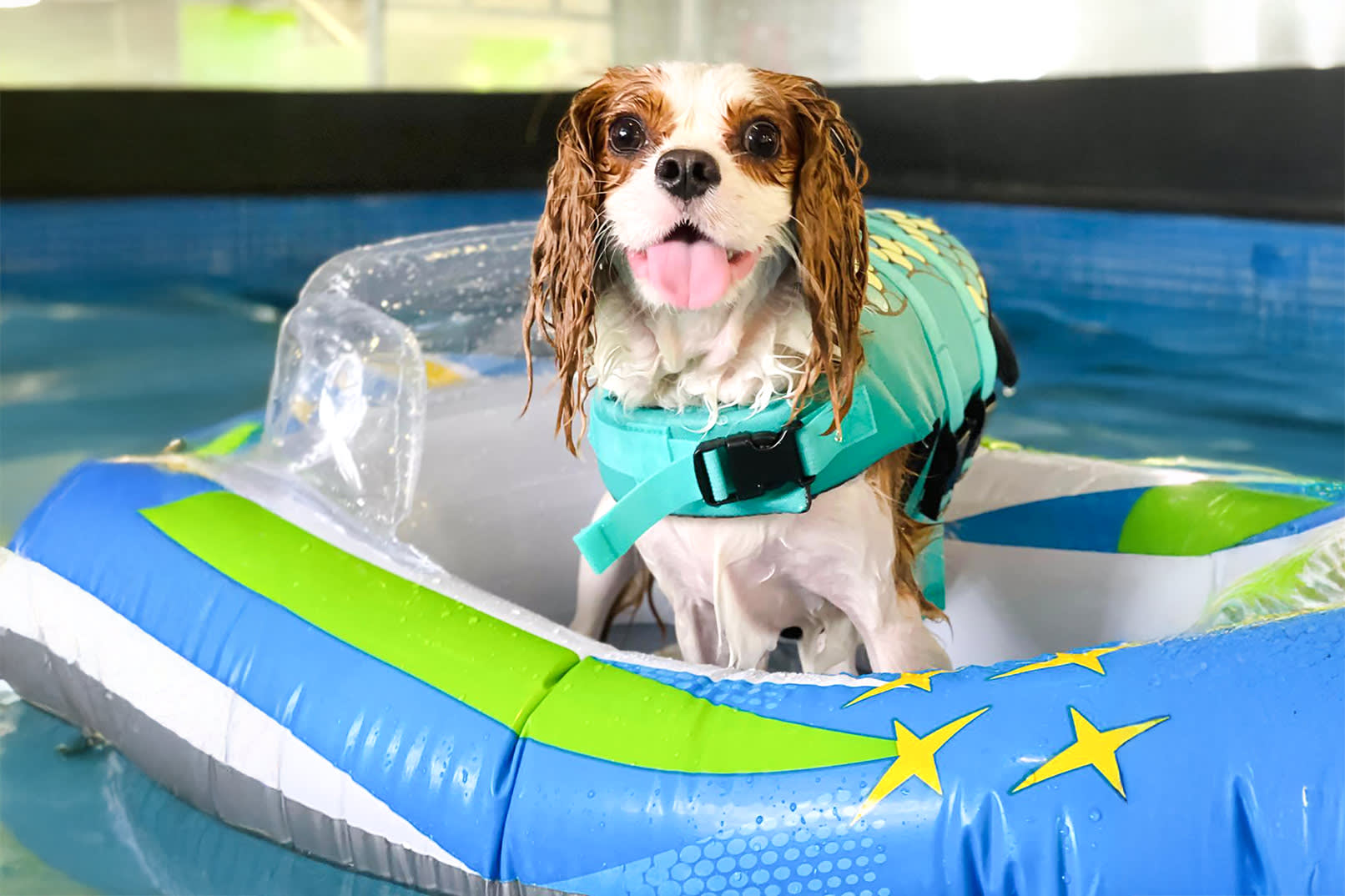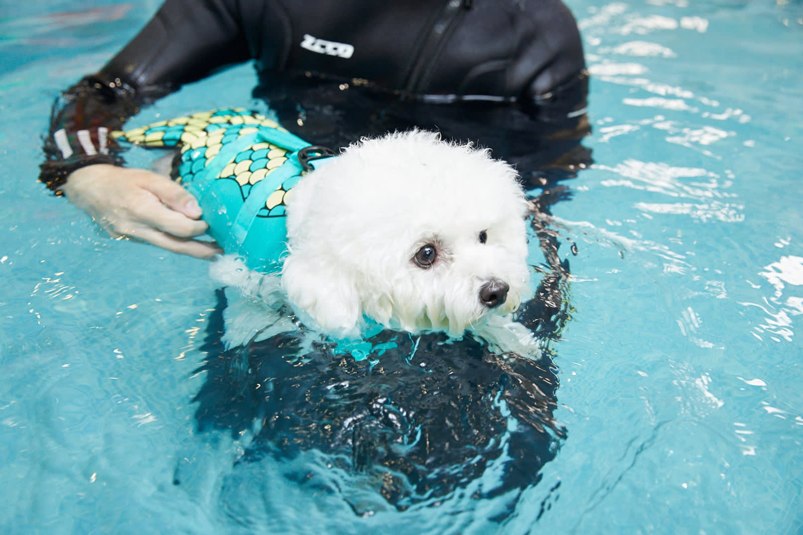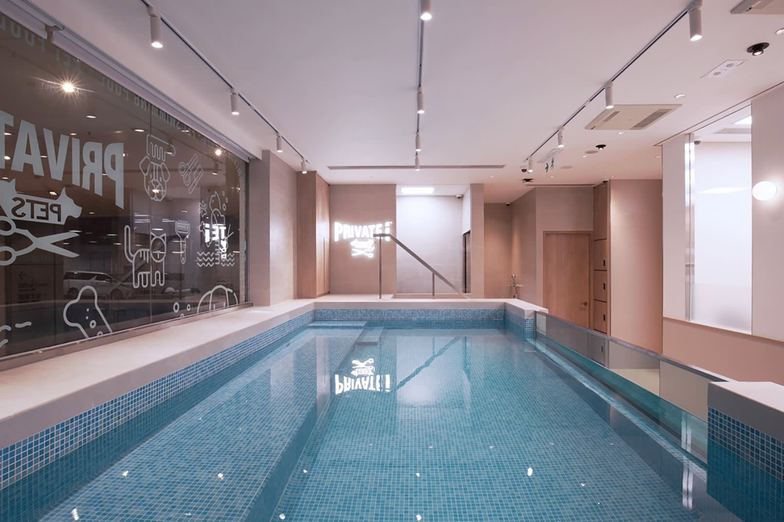 반려동물을 위해 설계된 실내 온수 수영장은 강아지의 심신 건강 발달에 도움을 줍니다.