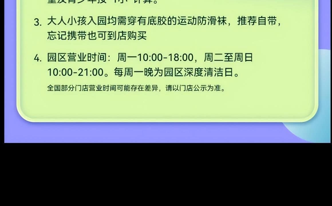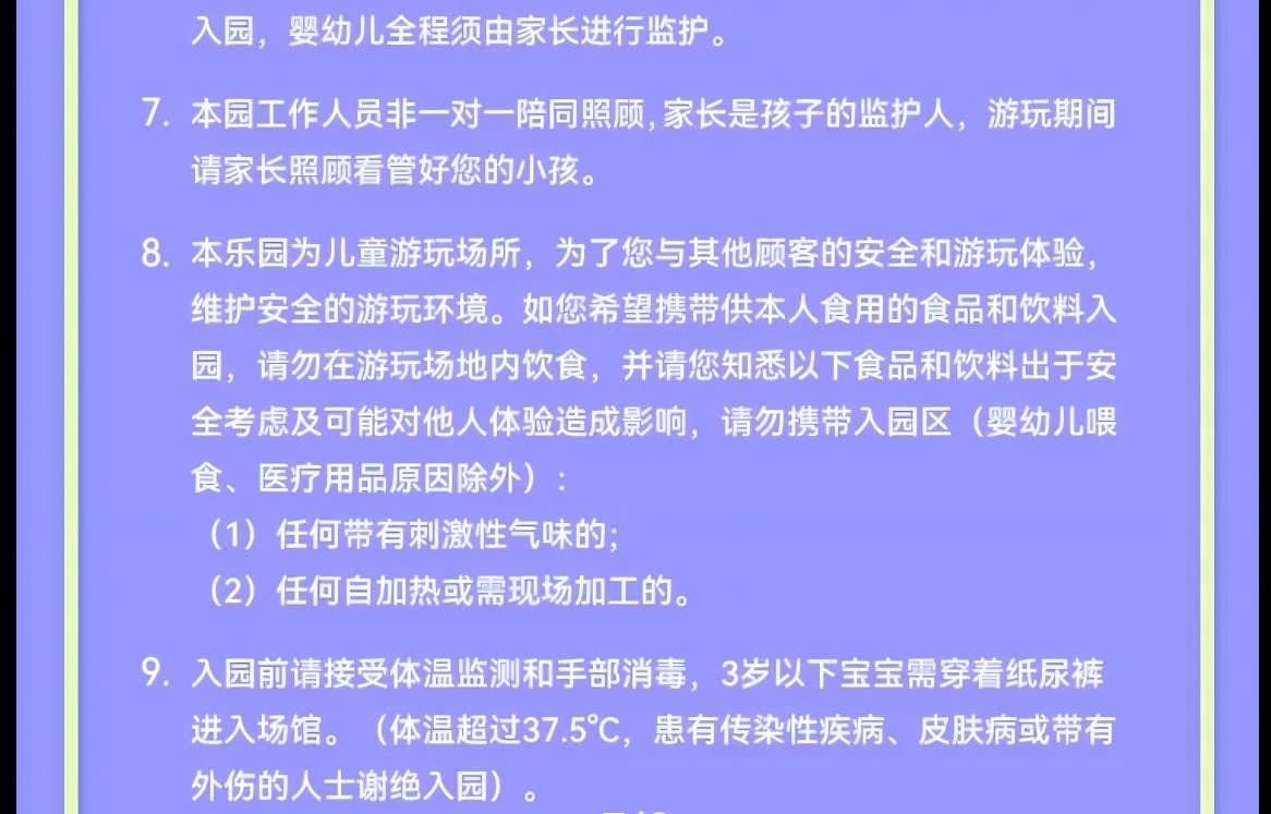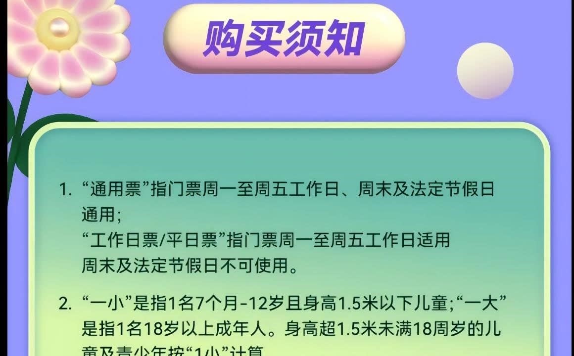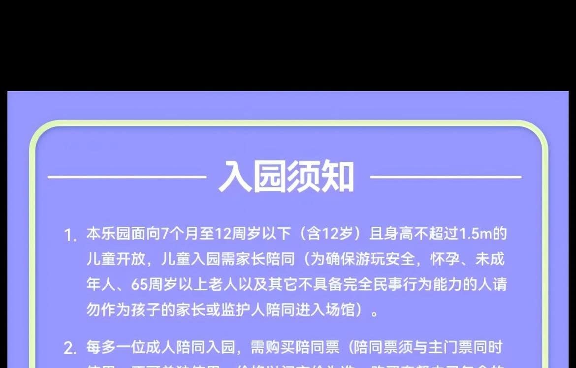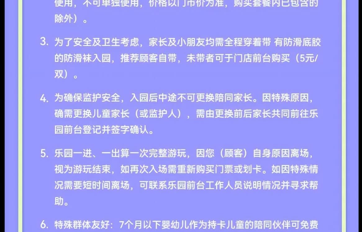 ▶성인 1인 & 아동 1인 일반 입장권 (¥200-¥50 상당의 식사 바우처 1매 포함) - 이용요건 * "성인 1인"은 만 18세 이상 성인 1명을 의미하며, 아동 티켓으로 성인 입장이 불가합니다. "아동 1인"은 신장 1.5미터 이하, 만 7개월~12세 아동 1명을 의미합니다. * 신장 1.5미터 초과 만 18세 미만의 아동 및 청소년은 아동 티켓을 구매하고 중요 공지 사항을 읽고 서명해야 하며, 공원 입장 시 반드시 보호자의 동반 및 감독이 필요합니다. - 추가정보 * 본 놀이공원은 7개월부터 만 12세 이하(12세 포함)이고 키 1.5m 이하의 어린이를 대상으로 운영되며, 어린이는 보호자와 동반 입장해야 합니다. (안전한 이용을 위해 임산부, 미성년자, 65세 이상 노인 및 기타 완전한 민사 행위 능력이 없는 분은 어린이의 보호자 또는 후견인으로서 입장할 수 없습니다.) * 성인 1명 추가 동반 시 동반 티켓을 구매해야 합니다(동반 티켓은 주 티켓과 동시에 사용해야 하며, 단독으로 사용할 수 없습니다. 가격은 현장 판매가를 기준으로 하며, 패키지에 포함된 경우는 제외됩니다). * 안전 및 위생을 위해 보호자 및 어린이는 미끄럼 방지 밑창이 있는 미끄럼 방지 양말을 착용해야 입장이 가능합니다. 고객님께서는 개인적으로 지참하시는 것을 권장하며, 미지참 시 매장 프런트에서 구매하실 수 있습니다(CNY 5/켤레). * 안전한 보호를 위해, 일단 파크에 입장하신 후에는 동반 보호자를 교체할 수 없습니다. 특별한 사유로 인해 아동의 보호자(또는 법적 보호자)를 교체해야 하는 경우, 교체 전후의 보호자가 함께 파크 프런트 데스크를 방문하여 등록하고 서명하여 확인해야 합니다. * 파크는 1회 입장 및 퇴장을 1회 완전한 이용으로 간주하며, 고객님의 사유로 퇴장 시 이용이 종료된 것으로 간주합니다. 재입장 시에는 티켓을 재구매하거나 카드를 다시 사용해야 합니다. 특별한 사정으로 인해 짧은 시간 동안 퇴장해야 하는 경우 파크 안내 데스크 직원에게 문의하여 상황을 설명하고 도움을 요청하십시오. * 특수 그룹 친화적: 7개월 이하의 영유아는 카드 소지 아동의 동반 파트너로서 무료로 입장할 수 있으며, 영유아는 항상 보호자의 감독 하에 있어야 합니다. * 본원 직원은 일대일로 동행하여 돌보지 않으며, 학부모는 자녀의 보호자이므로, 놀이 시간 동안 학부모님께서 자녀를 보살펴 주시기 바랍니다. * 본 테마파크는 어린이를 위한 놀이 공간으로, 고객님의 안전과 쾌적한 이용 환경을 위해 다음과 같은 사항을 안내해 드립니다. 개인적으로 섭취할 음식물이나 음료를 반입하는 경우, 놀이 공간 내에서는 섭취를 삼가 주시기 바랍니다. 또한 안전상의 문제와 타인에게 불편을 초래할 수 있는 아래 음식물 및 음료는 반입이 금지됩니다(영유아 이유식 및 의료용품은 제외). ① 자극적인 냄새가 나는 음식물, ② 자체 발열 또는 현장 조리가 필요한 음식물 * 입장 전 체온 측정 및 손 소독에 협조해 주시기 바랍니다. 3세 미만 아기는 기저귀를 착용해야 입장이 가능합니다. (체온이 37.5°C를 초과하거나 전염성 질환, 피부병, 외상 환자는 입장이 불가합니다.)