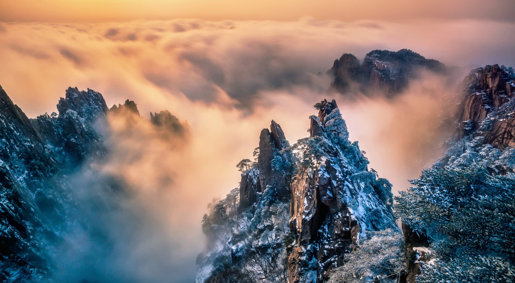 • 황산 풍경구는 안후이성 황산시 황산구 탕커우진에 위치하며, 기송(奇松), 괴석(怪石), 운해(云海), 온천의 "사절(四绝)"로 유명합니다. 또한, 상고대, 설경, 일출 등 매우 아름다운 경관을 자랑하며 "오악을 다녀오면 다른 산을 보지 않고, 황산을 다녀오면 오악을 볼 필요가 없다"고 칭송받습니다. 풍경구에는 남문, 서문, 북문 세 개의 문이 있으며, 관광객들은 주로 남문인 탕커우진으로 들어가 신궈셴 버스를 타고 전산(츠광거) 또는 후산(윈구쓰)으로 이동합니다. 관광 노선은 주로 전산, 후산 및 서해대협곡 세 부분으로 나뉩니다. 전산은 웅장한 경치를 자랑하며 영객송, 연화봉, 천도봉 등 유명한 관광 명소가 있습니다. 후산은 수려하고 섬세하며 시신봉, 비래석, 원숭이 바위 등의 기이한 경관을 자랑합니다. 서해대협곡은 깊고 웅장하며 황산의 정수라고 불립니다. 일반적인 노선은 2일 관광이며, 전산으로 올라 후산으로 내려오거나 후산으로 올라 전산으로 내려오는 코스를 선택할 수 있습니다. 당일 관광은 케이블카를 왕복하는 것을 추천합니다. 산 정상 숙박 시설은 광명정, 천해, 배운정, 백아령 등에 집중되어 있으며, 광명정은 일출 감상에 적합하여 관광 및 숙박지로 인기가 높습니다.