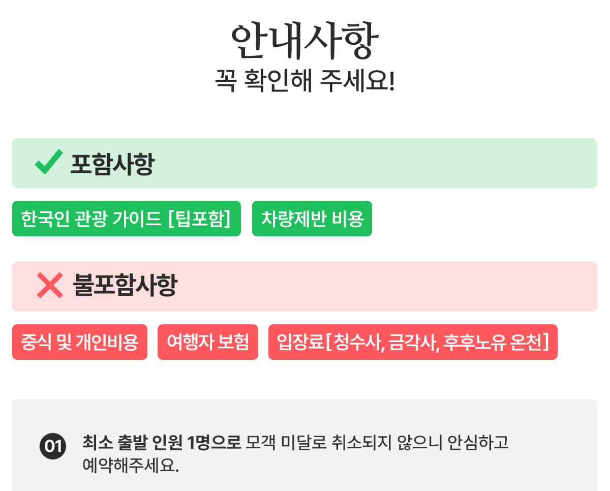 * 본 투어는 최소 1명부터 출발 확정입니다