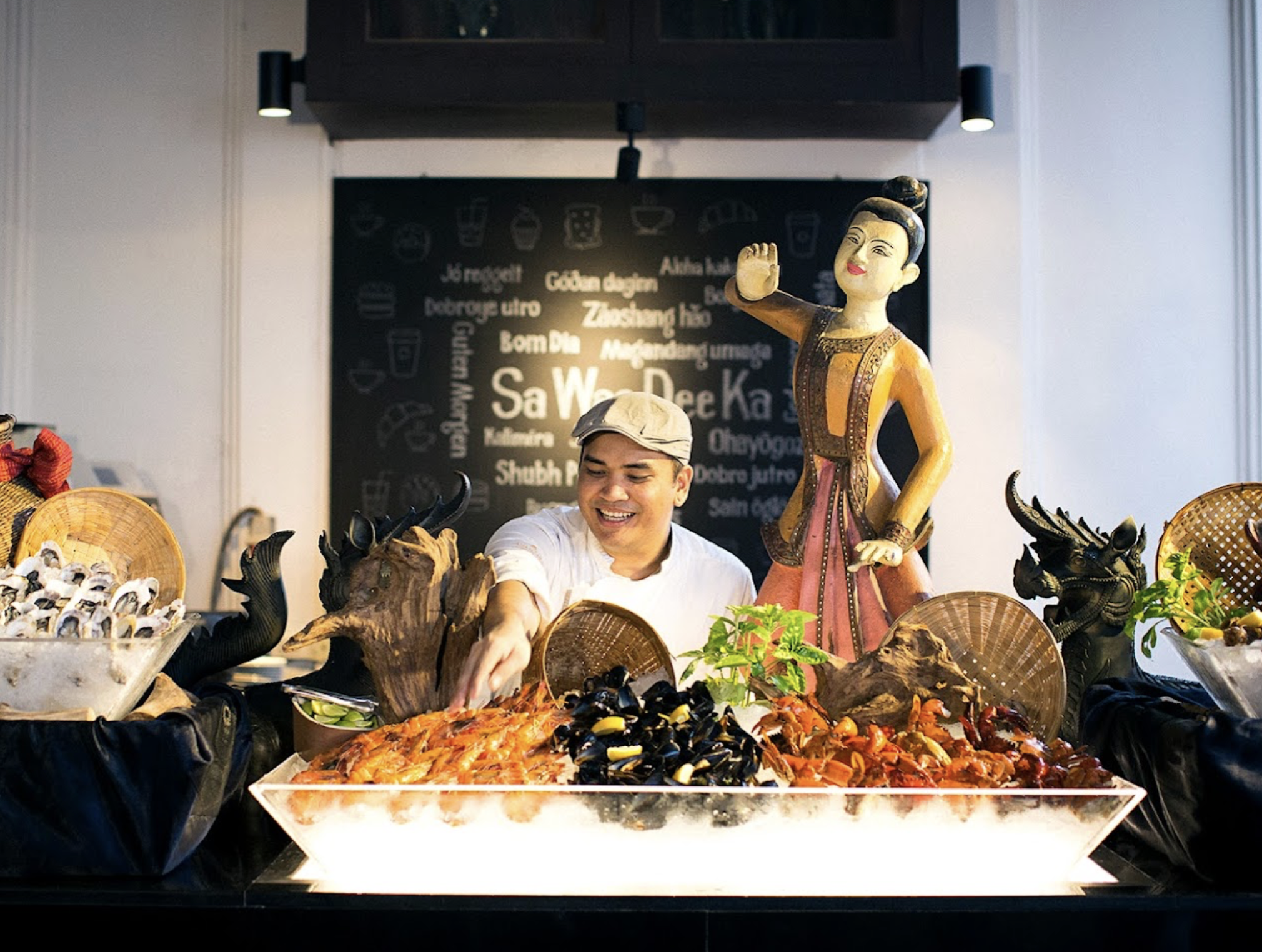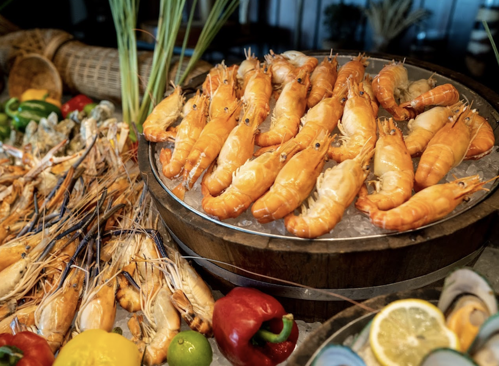 인터내셔녈 BBQ 뷔페를 제공하고 타이만에서 잡아온 신선한 해산물 직화 과정을 두 눈으로 감상하세요.