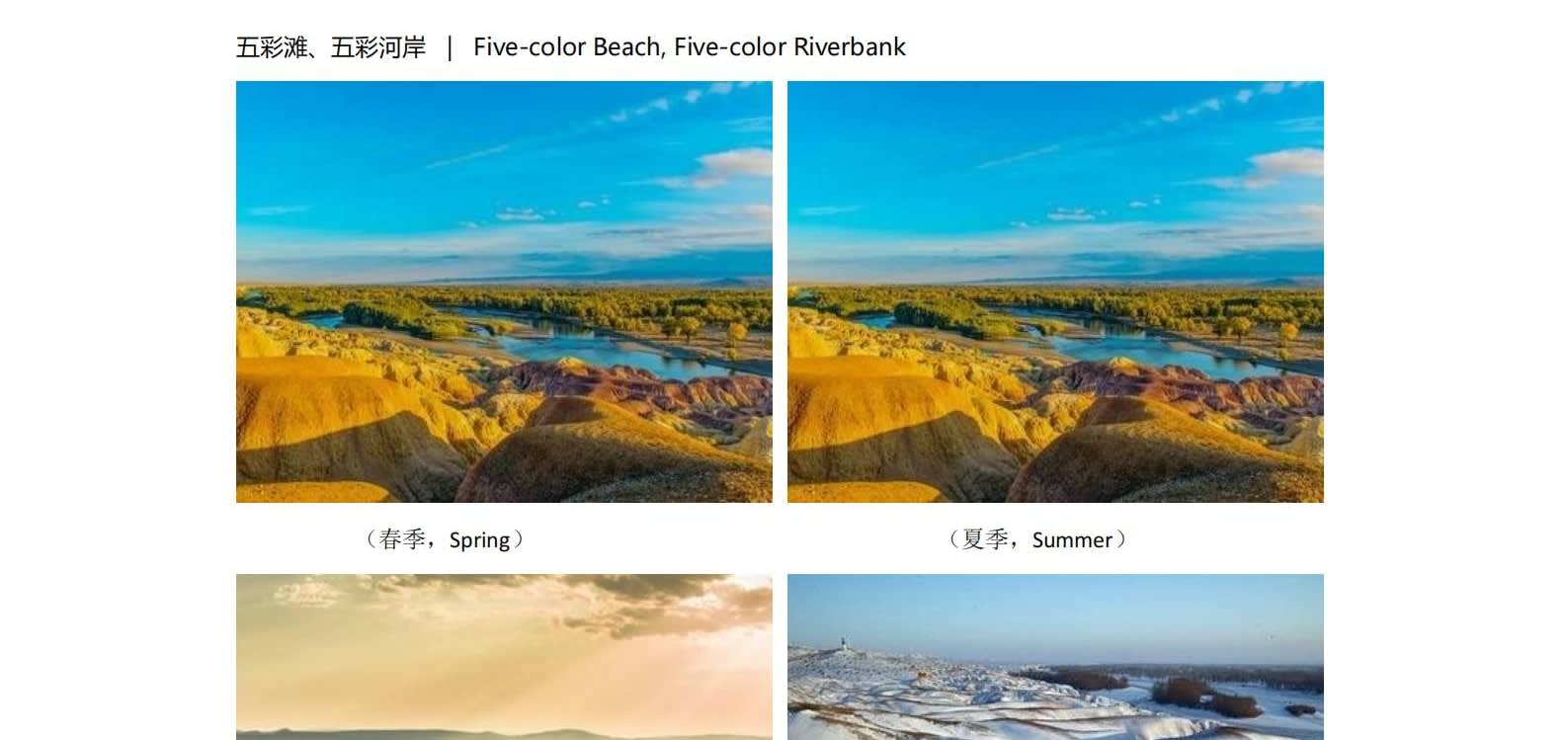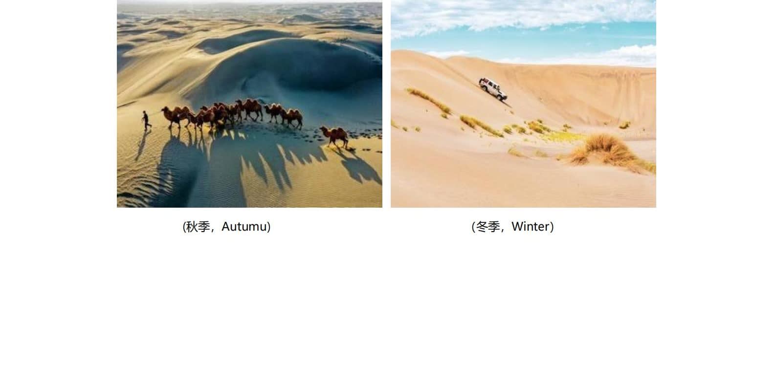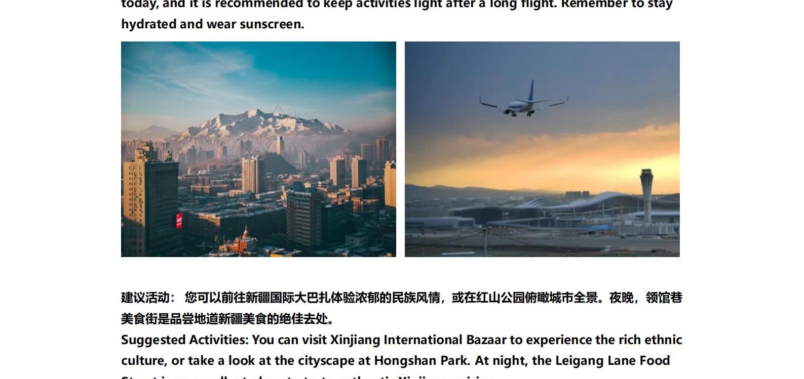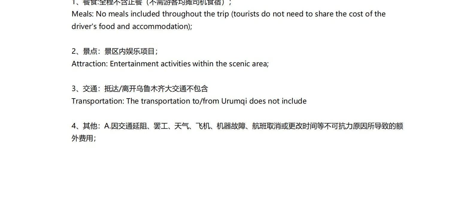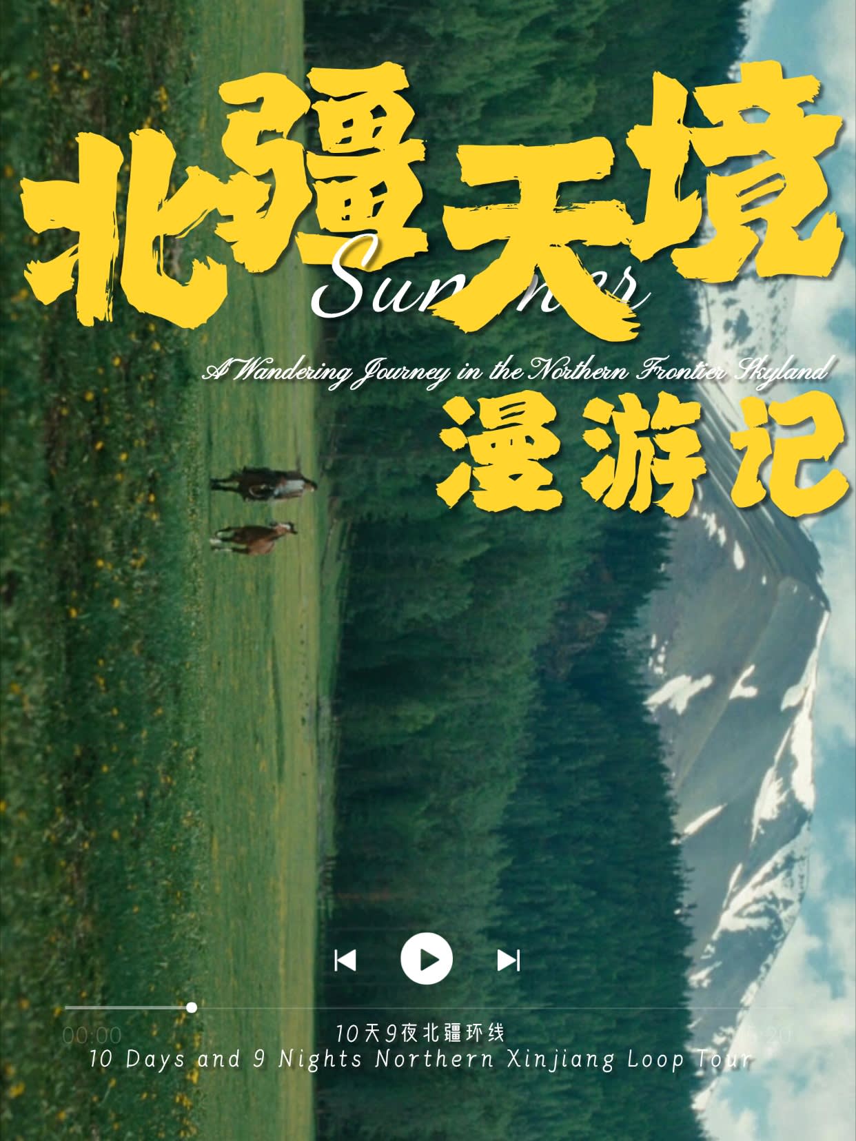 • 1일차: 우루무치 24시간 공항 픽업 서비스 2일차: 우루무치 - S21 사막 고속도로 - 카라마일리 사구 공원 - 알타이 3일차: 알타이 - 아허 고속도로 (개통 시 이용) - 허무촌 - 허무 통나무집 4일차: 호호트 - 호호트 마을 (신의 프라이빗 보호구역) - 카나스 호수 - 카나스 캐빈 5일차: 카나스 (우롱만 - 문베이 - 이모탈 베이) - 컬러풀 비치 - 우얼허 6일차: 우얼허 - 세계 악마의 도시 - 사이람 호수 풍경구 입구 7일차: 사이람 호수 일주 - 나랏 8일차: 나랏 - 나랏 하늘 초원 - 징허 9일차: 징허 - 무타하르 사막 - 우루무치 10일차: 우루무치 24시간 공항 픽업 서비스