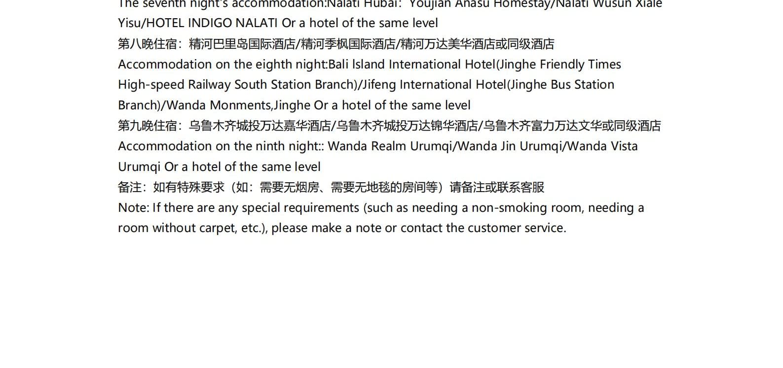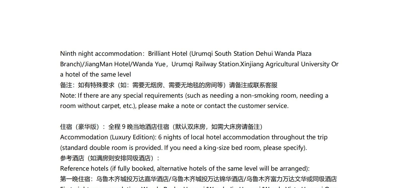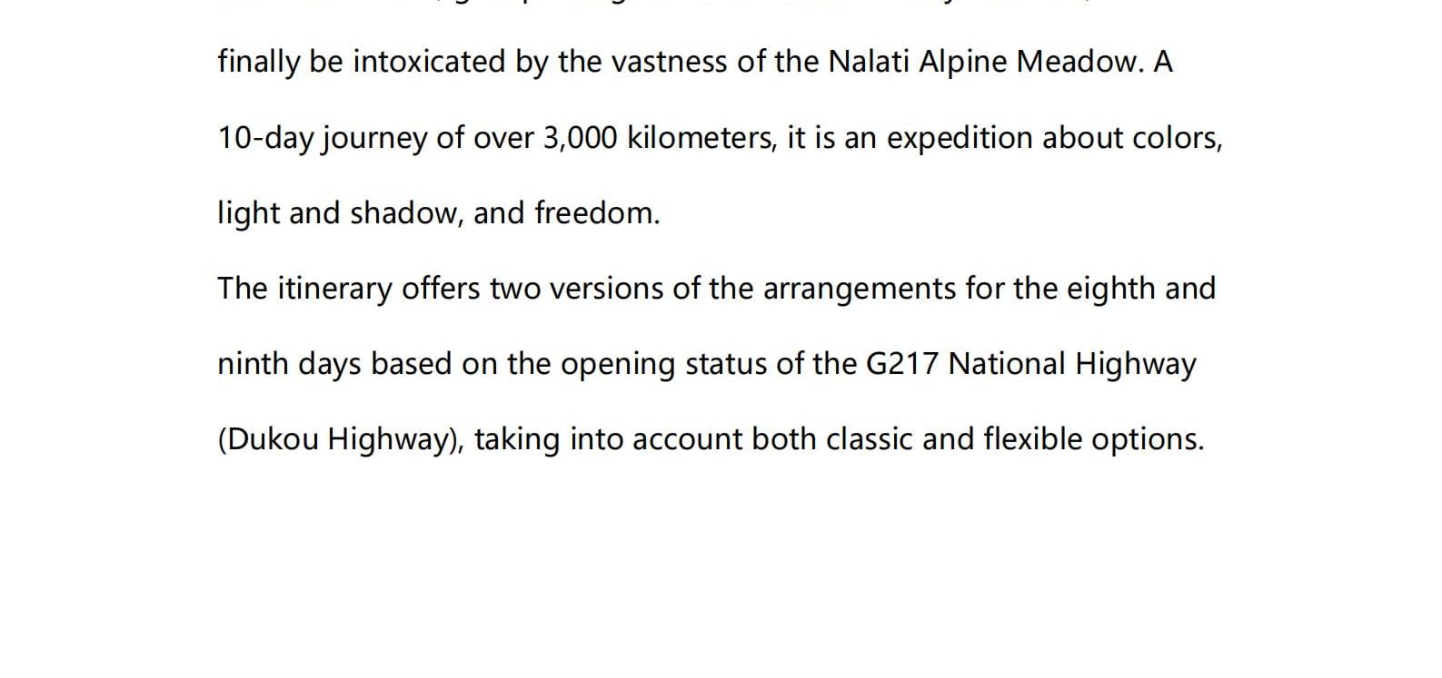 • 쿠쿠에오 노선이 개통되면 다음 일정이 변경됩니다: 8일차: 이닝 - 나랏 하늘 초원 - 나랏 9일차: 나랏 - 두커우 고속도로 - 우루무치