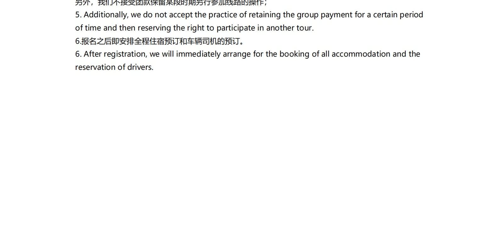 -주문 완료 후, 신분증명 정보 제공을 위해 직원이 고객에게 연락을 드릴 것입니다. 환불 안내: 출발 11일 전(11일 제외)보다 일찍 출발할 예정인 여행객의 경우, 주문이 취소되며 수수료는 0% 부과됩니다. 출발 10일 전부터 5일 전까지 여행을 취소하는 경우, 주문 금액의 30%가 부과됩니다. 출발 4일 전부터 2일 전까지 여행을 취소하는 경우, 주문 금액의 70%가 부과됩니다. 출발 1일 전 이내에 여행을 취소하는 경우, 주문 금액의 100%가 부과됩니다. 위 비율에 따라 지불된 사업 수수료가 판매자의 실제 손실을 충당하기에 불충분한 경우, 소비자는 판매자의 실제 손실을 보상해야 하지만, 최대 금액은 총 주문 금액을 초과할 수 없습니다. 또한, 단체 결제를 일정 기간 보류한 후 다른 투어에 참여할 권리를 유보하는 행위는 허용되지 않습니다. 등록 후, 모든 숙소 예약 및 운전자 예약을 즉시 진행할 예정입니다.