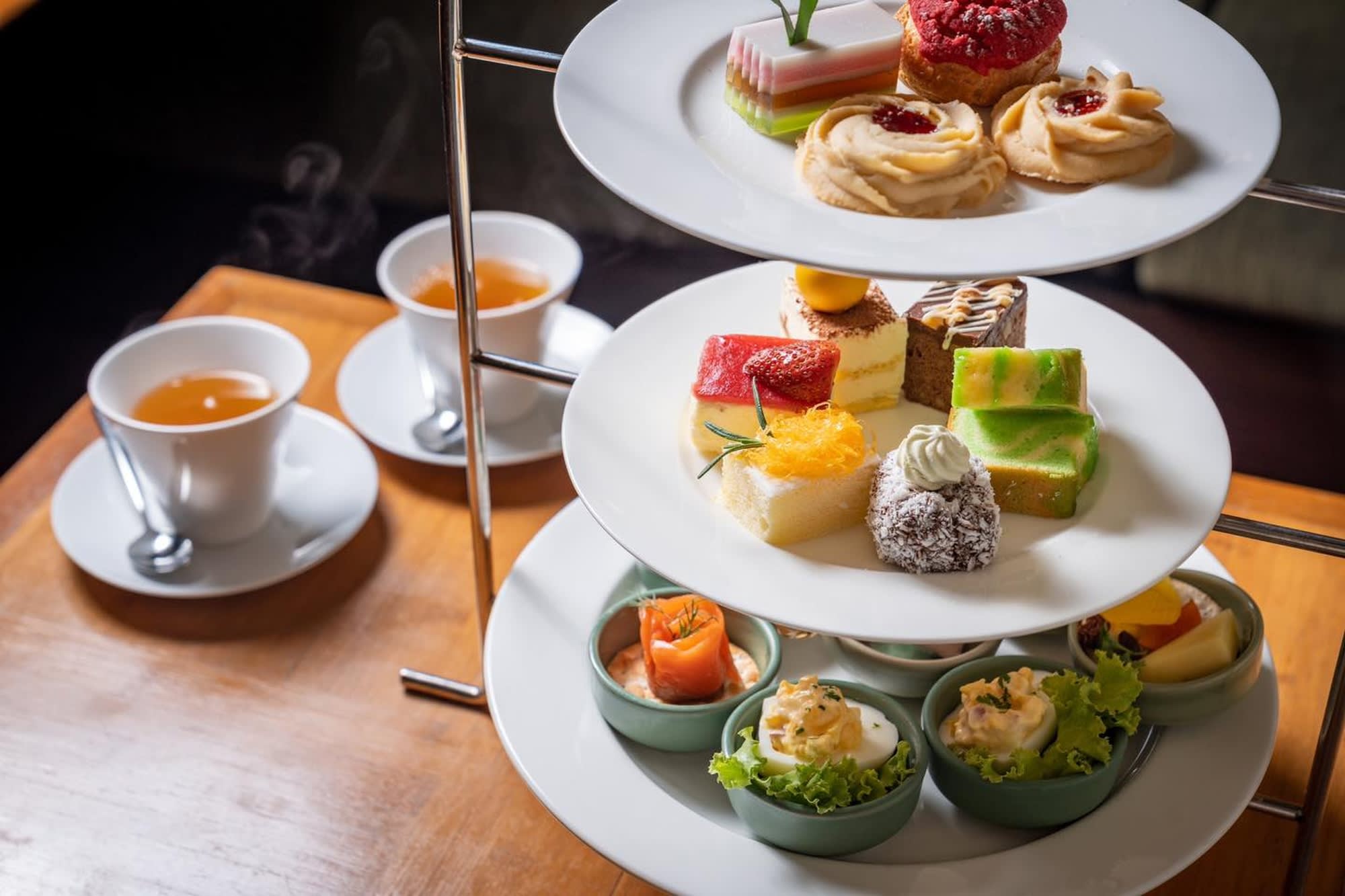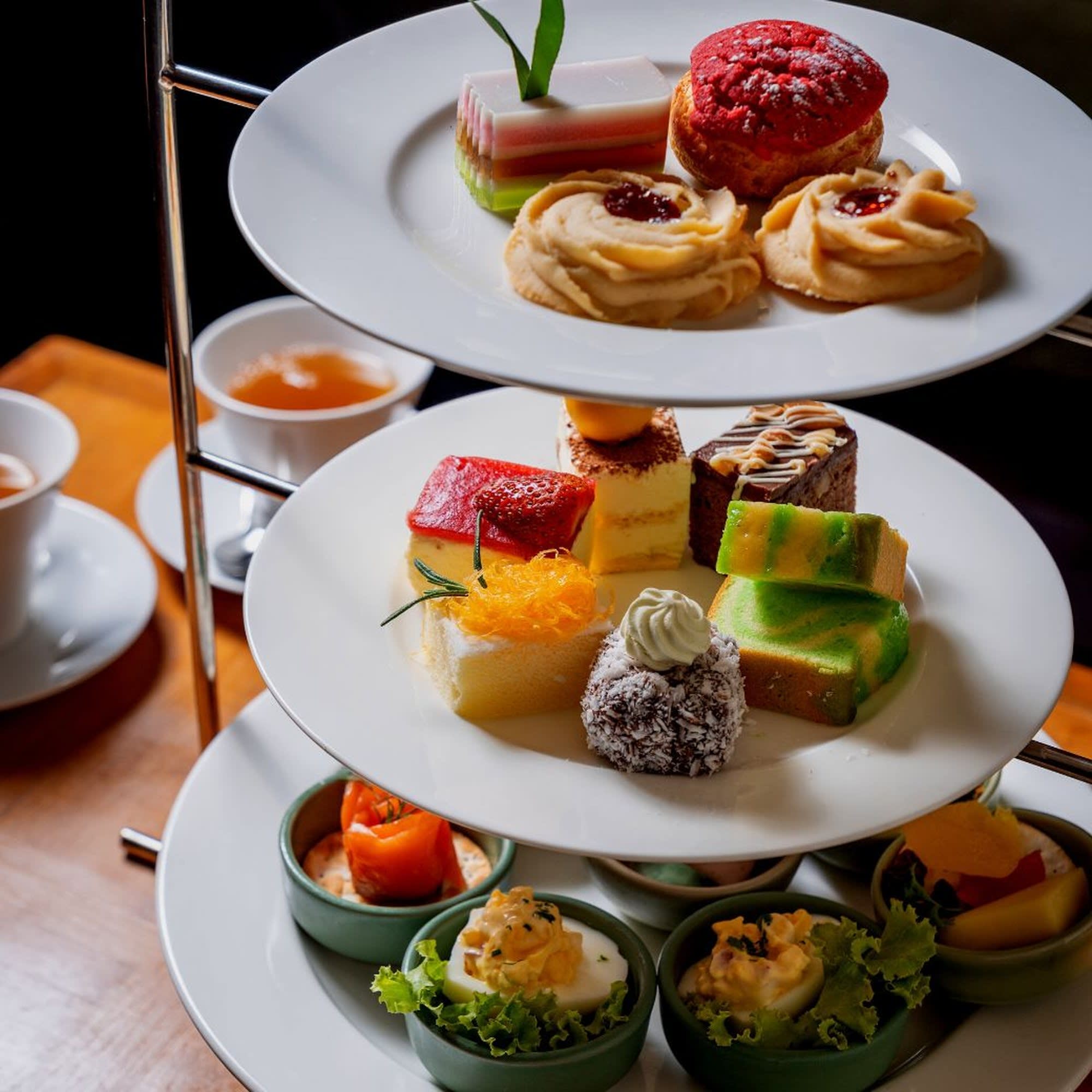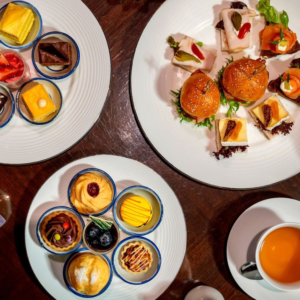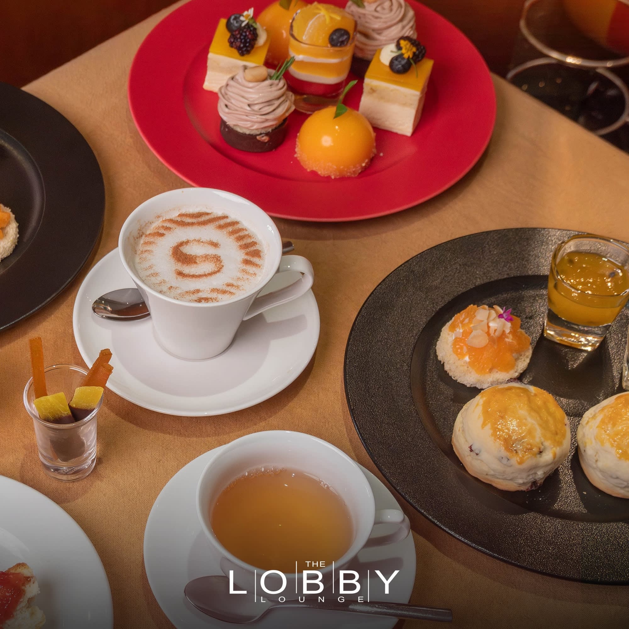 세련되고 매력적인 로비 라운지에서 달콤한 케이크와 스낵, 티를 즐기며 편안한 오후를 보내세요!