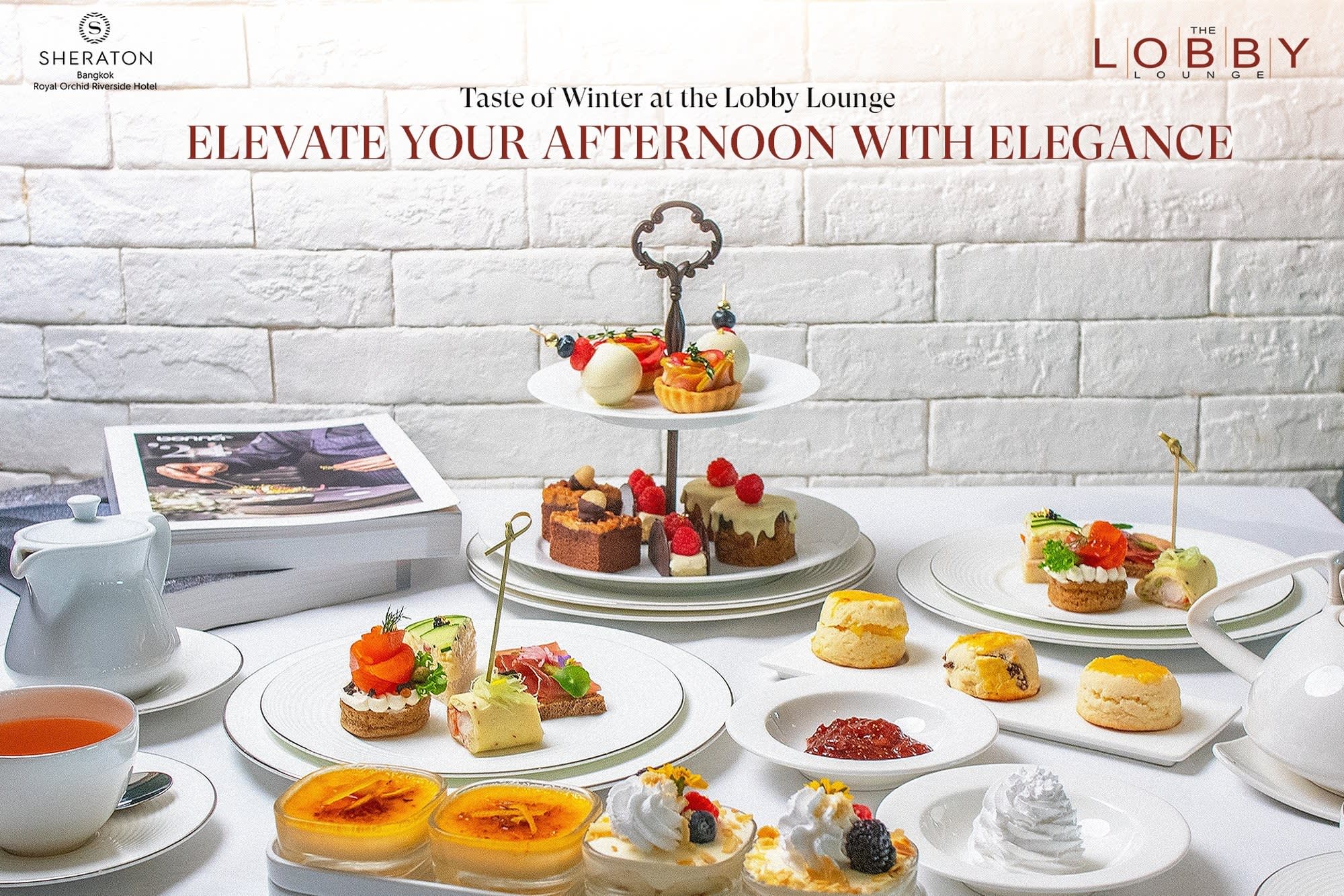 강변 5성급 호텔인 로얄 오키드 쉐라톤 호텔의 로비 라운지에서 진행하는 에프터눈 티 세트 입니다.