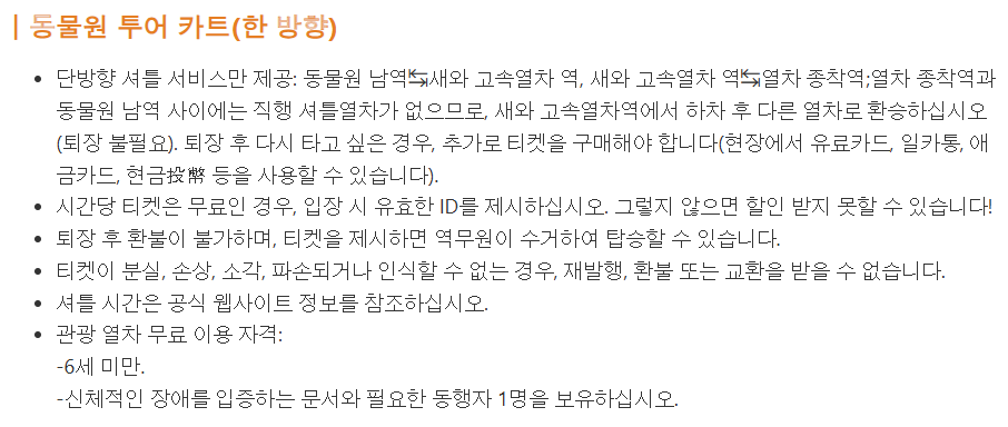 🛺동물원 관광 열차 (편도)
